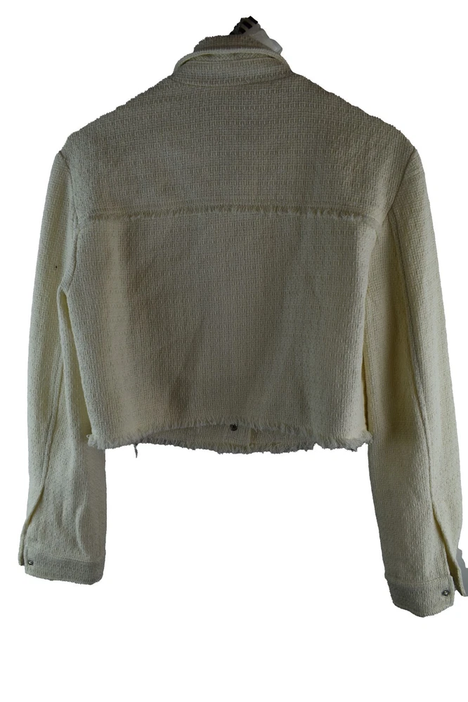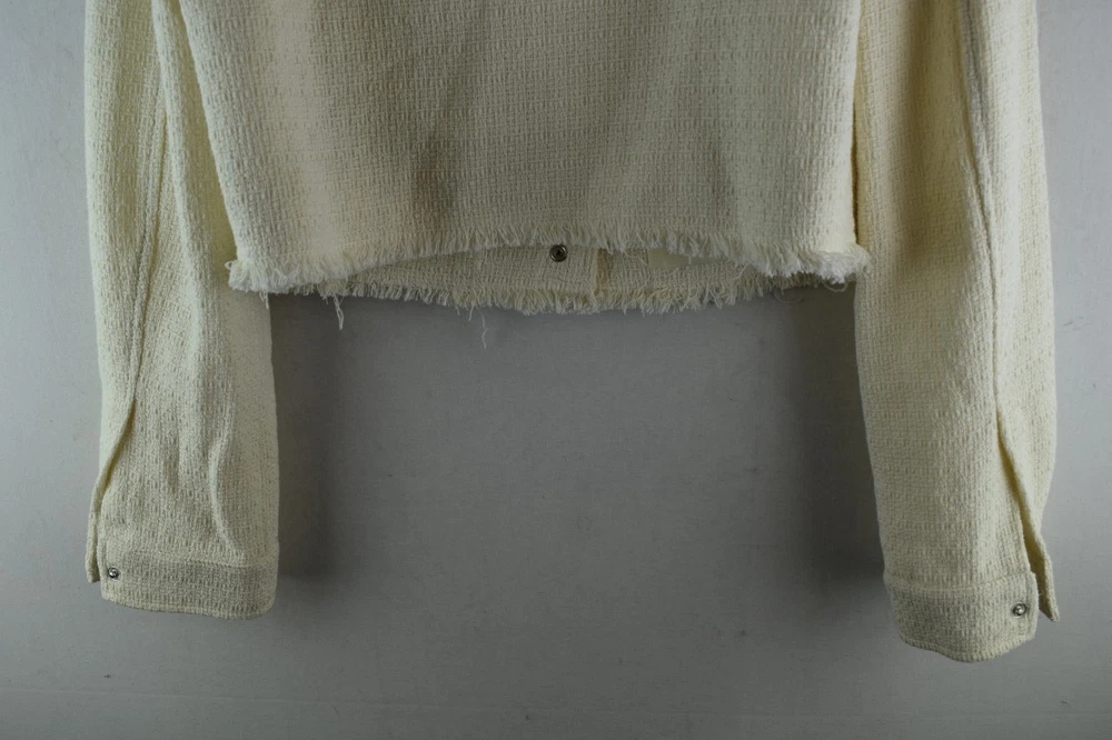 Topshop Womans Cropped Denim Button Collared Trucker Jacket Size XS Beige