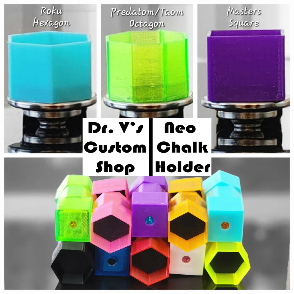 THIS LISTING IS FOR THE HOLDER ONLY, CHALK NOT INCLUDED. I got tired of weak and cheap magnetic holders. I am an engineer by profession. So I decided to overbuild one. I added a powder coated steel gun clip as the base of the holder. Then, there are 3 N52 Strength Neodymium magnets, that make this the strongest magnetic holder in the market. The 3 Neo magnets create an ULTRA STRONG hold. Please see the video, it literally holds through a 2x4 piece of wood. This strength is unmatched by any other holder in the market. PLEASE NOTE - WHEN ORDERING PREDATOR SHAPE, please choose between 1080 or PURE as the size is different. There are 2 types of bases: a metal clip and a leather strap. I have 4 basic shapes: I make these for Masters (Square), Predator 1080 and Taom (Octagon), Roku (hexagon), or Predator PURE (Octagon 2). I also have 10 colors: Blue, Purple, Black, Orange*, Pink*, Red, Aqua Blue, White, Green*, and Yellow*. *neon color A "Clear Holder Cover" will be sent with every order. Chalk Shape compatibility Square - Masters, Kamui (0.98, 1.21), Blue Diamond, Tiger, Kami kaze. Magic Chalk, Navigator, Triangle, On Cyborg, OB Chalk, Silver Cup, Lava Chalk,Balabushka Chalk, G2 (S, F), Mezz Smart Chalk Octagon - Predator 1080, Taom, Great White Hexagon - Kamui Roku Octagon 2 - Predator PURE I build these one at a time in the USA, no large scale factory production. I have sold many locally with glowing reviews. Most folks are just amazed by the strength of the magnets, even through thick denim. If the Chalk feels loose, wrap a few rounds of plumbers teflon tape or electric tape around the chalk for a snug fit into the plastic holder. DISCLAIMER: Given how strong the magnets are, THESE ARE NOT TOYS and should be treated carefully. I am not liable for any resulting damage resulting from misuse or from the product not used for its intended purpose. 👍🥸👍 Also, pull via the plastic casing to disengage it from the holder. If you pull just the chalk it may come out from the plastic casing on as these are super strong magnets.