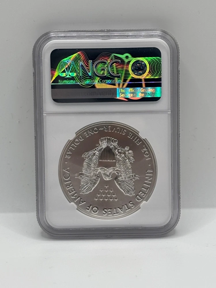 The product is a 2020 American Eagle Silver coin, struck at the San Francisco Mint, with a fineness of 0.999 and a grade of MS 70. It contains 1 oz of silver and is certified by NGC as an Early Releases coin. The coin is part of an emergency production run and is minted by the U.S. Mint.