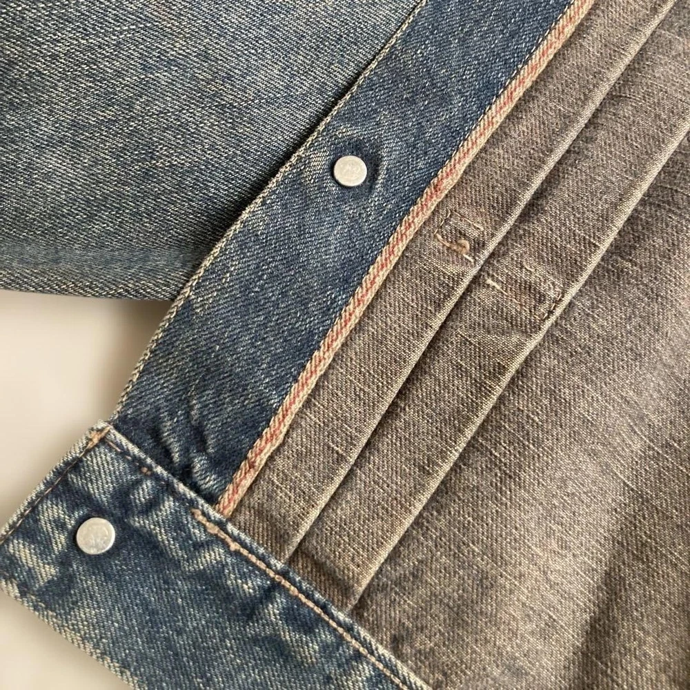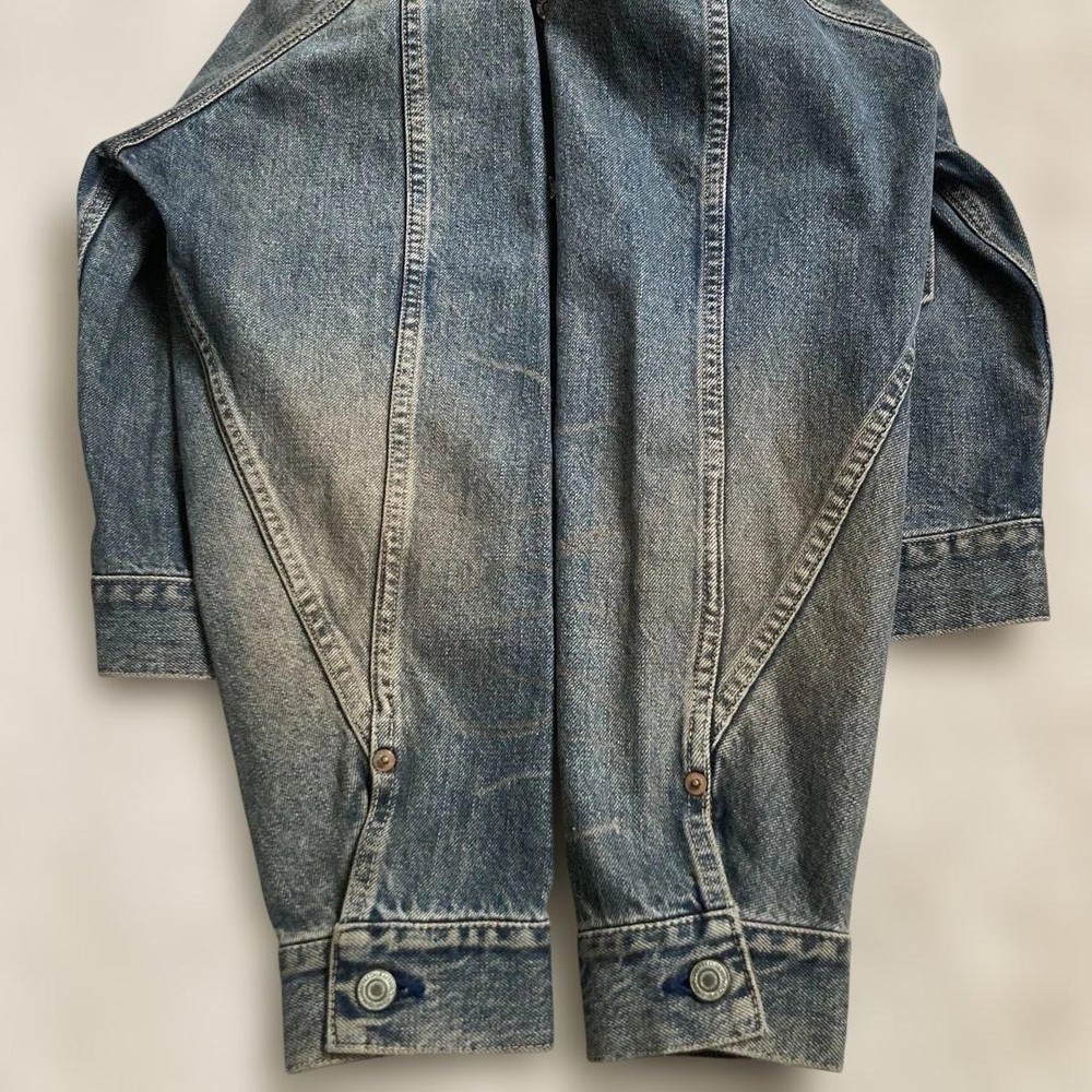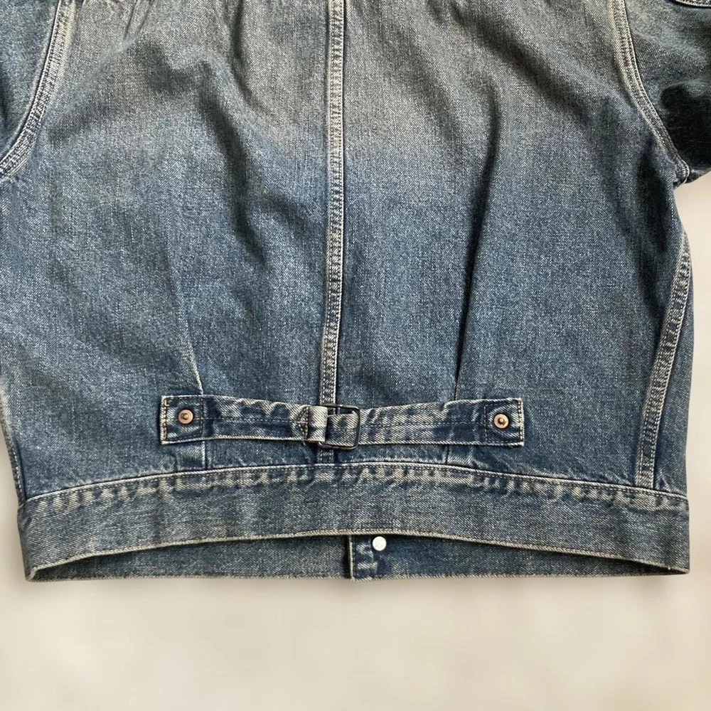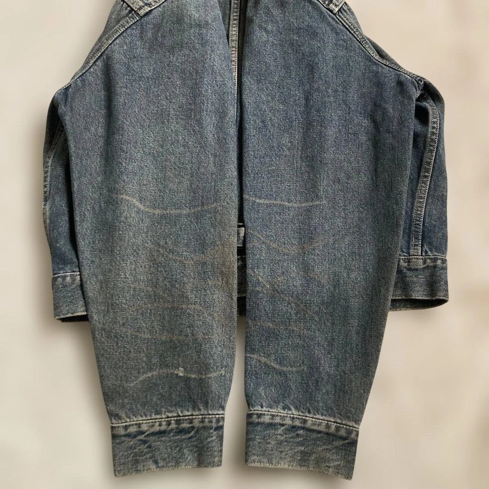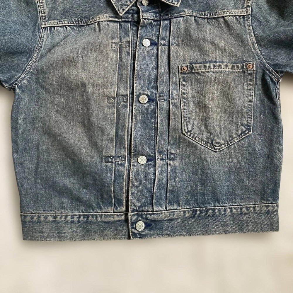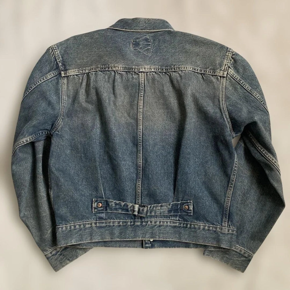 Closure: Button Model: WWII T-Back Vintage: Yes Country of Origin: Japan Handmade: NA Type: Jacket Warmth Weight: NA Insulation Material: NA Lining Material: NA California Prop 65 Warning: NA Fabric Type: Selvedge MPN: NA Size Type: Regular Theme: Vintage Performance/Activity: Casual Features: Distressed Outer Shell Material: Denim Jacket/Coat Length: Waist Length Chest Size: 20.5 in Garment Care: Dry Clean Only Personalize: No Style: Denim Pattern: Solid Brand: STUDIO D'ARTISAN Color: Blue Product Line: NA Occasion: Casual Accents: Pleated Front Season: All Seasons Department: Men Collar Style: Spread Fit: Regular Size: M
