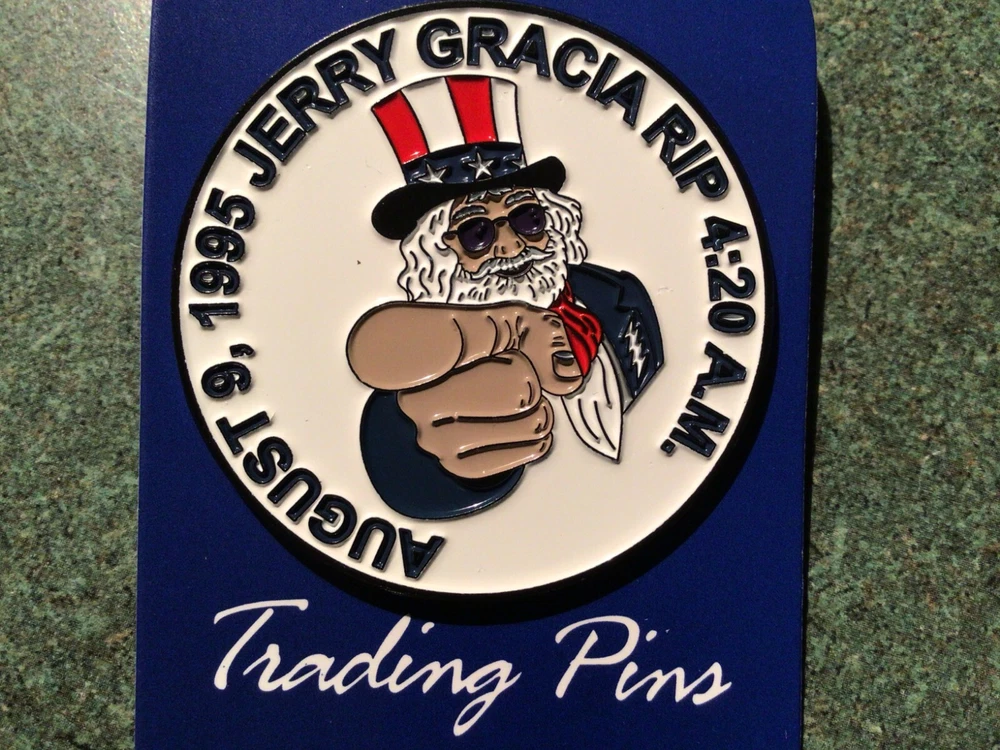 STUPID ERROR PIN FACTORY SPELLED JERRY GARCIA WRONG! wow ! well, at least I didn't have to pay for them! So, to cover ebay fees, taxes, envelope, paper, ink, I'll sell for $1.25 each plus shipping!!
