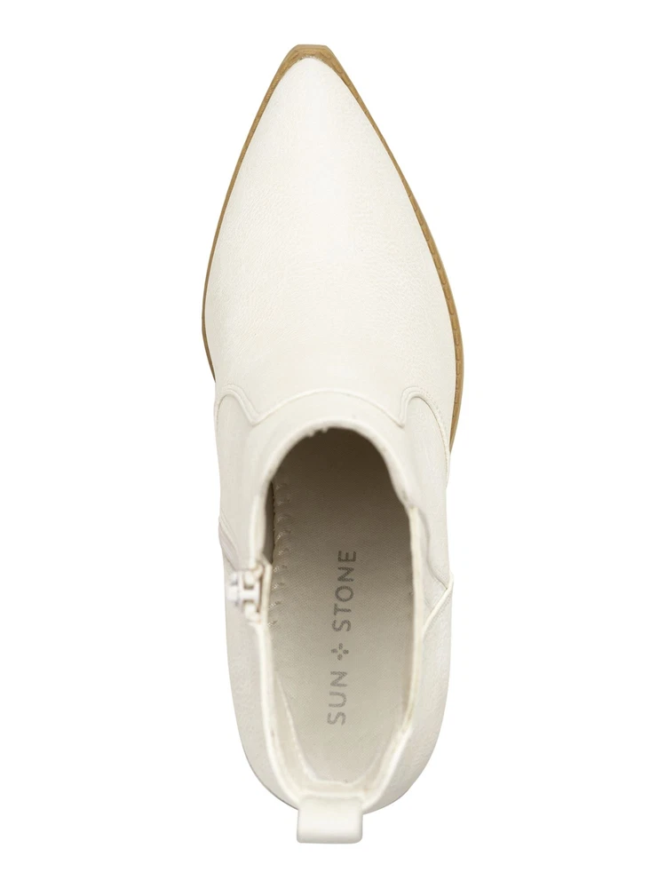 SUN STONE Womens White Back Pull-Tab Abiigail Pointed Toe Block Heel Booties 9 M