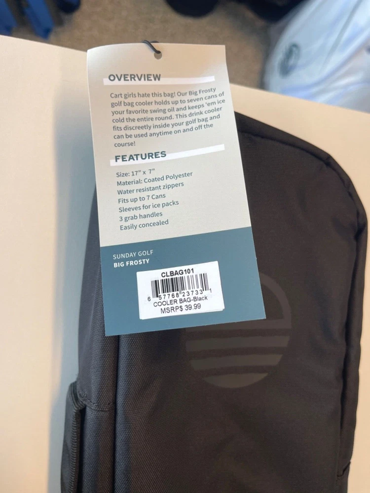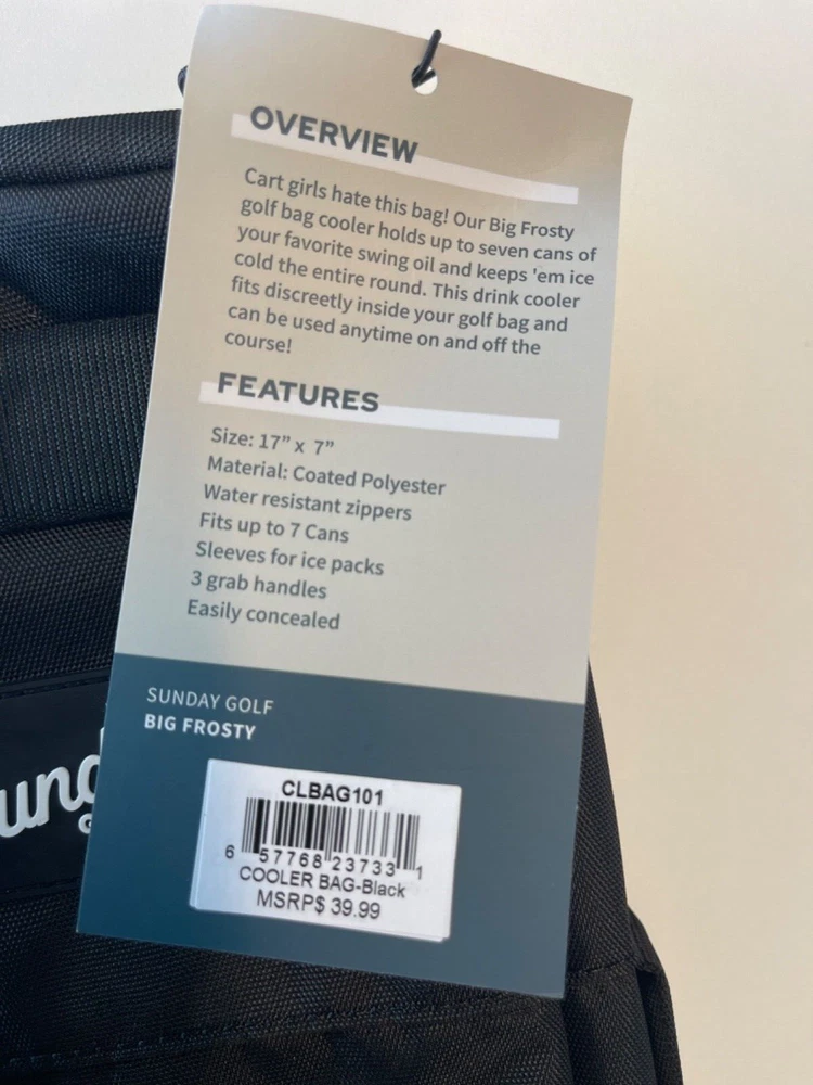 SUNDAY GOLF "Big Frosty" Beer can/ drink holder that fits in your golf bag. holds up to 7 beer / drink cans Heather grey color, Very cool! Brand new with Tags! Fast Shipping, Free Shipping! Buy It Now!