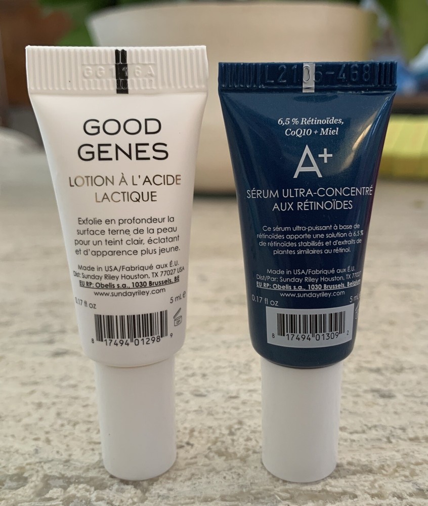 SUNDAY RILEY A+ High Dose Retinoid Serum & Good Genes Lactic Acid Samples .17oz Each Travel Size - FREE SHIP.