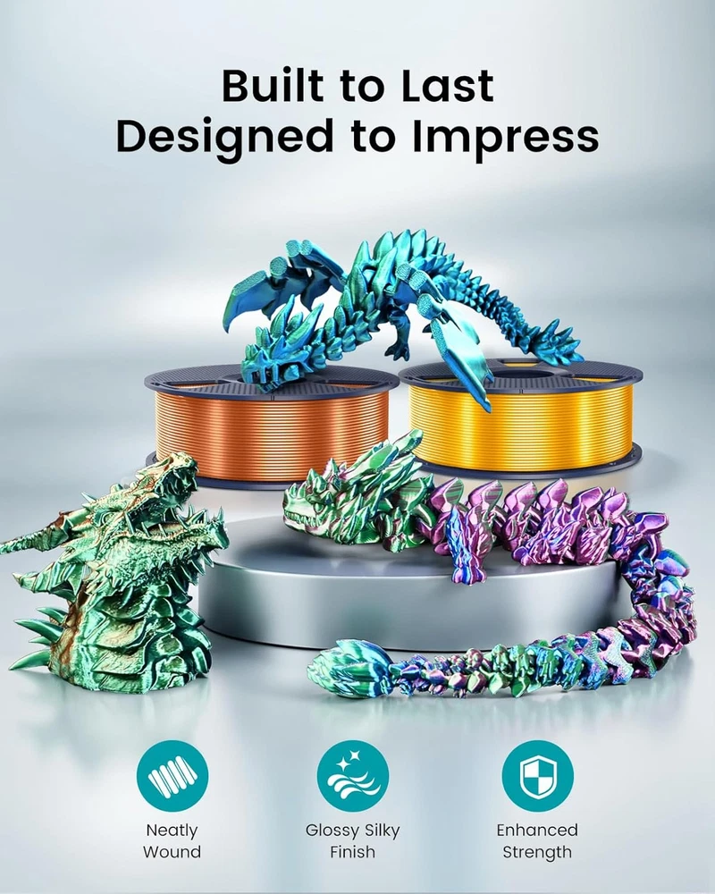 Store New Arrivals Add to Favorite View Feedback Contact SUNLU Silk PLA+ Filament 1.75Mm, Chrome like Gloss Finish, Smooth Silk Texture, Upgraded Formula for Stable Printing, 1Kg(2.2Lbs) PLA plus 3D Printer Filament, Silver Description Item model number SUNLU-Y-SilkPLA-Sliver Material Polylactic Acid Number of Items 1 Color A-silkpla-silver Item Diameter 1.75 Millimeters Material Type Polylactic Acid Manufacturer Part Number SUNLU-Y-SilkPLA-Sliver Item Weight 2.6 Pounds Is Discontinued By Manufacturer No Package Dimensions 8.31 x 8.11 x 2.83 inches Glossy Silk Finish: This silk PLA+ filament delivers a natural glossy, satin-like finish straight from your 3D printer—no need for post-processing. Perfect for artistic models, decorative pieces, and any project where appearance matters. Consistent & Hassle-Free Printing: Designed for clog-free, stable extrusion, this PLA filament 1.75mm features a precision tolerance of ±0.02mm. Enjoy seamless feeding and fewer interruptions, whether you're printing complex models or basic prototypes. Optimized for Quality & Compatibility: Made from high-purity materials, SUNLU PLA filament offers strong layer bonding and low shrinkage for clean, accurate prints. Recommended settings: Nozzle Temp 205–215°C, Bed Temp 60–80°C, Print Speed 30–60mm/s. Slower speeds enhance the silky finish. Neatly Wound for Tangle: Each spool of 3D printer filament is mechanically wound and thoroughly inspected to reduce tangling and breakage. A clean feed path supports smoother long-duration prints without hassle. Reusable Spool & Vacuum Sealed Protection: Packed in a vacuum-sealed bag with desiccant to reduce moisture and eliminate bubbles. Features a reusable spool—just refill when empty. Compatible with Bambu Lab, ELEGOO and MarsWork refill filament. Note: Please print out the model first and then compare the colors. If there is a color mismatch after printing, please contact us at any time. Product description SUNLU 3d Printer Filament Add to Cart Add to Cart Add to Cart Add to Cart Add to Cart Customer Reviews 4.5 out of 5 stars 465 4.5 out of 5 stars 40 4.5 out of 5 stars 906 4.4 out of 5 stars 297 4.4 out of 5 stars 506 Price $17.99 $ 17 . 99 $20.99 $ 20 . 99 $13.99 $ 13 . 99 $14.99 $ 14 . 99 $33.99 $ 33 . 99 Tensile Strength Moderate High Medium-High Moderate Medium Elastic Modulus High High Medium High Low Flexural Strength Moderate Very High Medium-High Moderate Low Does it need to be dried Recommend Urgently Recommended Yes Recommend Yes Ease of Printing ✔ ✘ ✔ ✔ ✔ ABOUT US We offer the best prices around on high quality products. Our E-store includes media such as books, movies, music and games while offering electronics, toys, sporting apparel, clothing, tools, general home, garden items and more. SHIPPING We are always working hard to ensure your package arrives as soon as possible. Please understand that some factors like weather, high postal traffic, and the performance of shipping companies are outside of our control. We offer free shipping to the lower 48 states and ship within 2 business days of payment, usually sooner. We do not accept P.O. Boxes. Please provide a physical address. For shipping outside of the continental USA, we only use eBay's Global Shipping Program.The item is shipped to KY and then sent to the rest of the world. International customers are responsible for all duties and taxes. Continue to check out in order to calculate costs for shipping the item to your country. Messages regarding eBay's Global Shipping Program MUST be directed at eBay EXCLUSIVELY. RETURNS We offer a 30-Day Return Policy on items which you are not completely satisfied with. You have the option for a full-refund or an exchange of the item. No returns are available on items shipped outside of the USA. PAYMENT We accept PayPal. CONTACT US This page content is yet to come Please ad us to your favorite seller and visit again later Thank You CUSTOMER SATISFACTION We try our very best to make sure every customer is completely satisfied. If there's a problem, message us! We're happy to help. WE ACCEPT Copyright © 2021 AutoDS. | All Rights Reserved