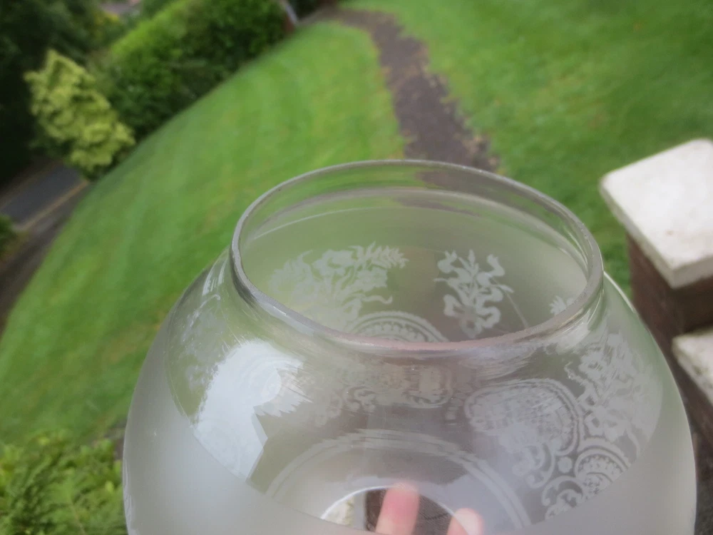 UP FOR AUCTION IS THIS ORIGINAL GLASS DUPLEX OIL LAMP SHADE, WHICH WILL FIT A STANDARD DUPLEX BURNER. IT IS APPROX 7 1/4 INCHES IN HEIGHT. THE BOTTOM STRAIGHT FITTER IS APPROX 4 INCHES. CHIPS ON THE FITTER RIM AND TOP OPENING THE GLASS DOES CONTAIN SOME AIR BUBBLES, SMALL SURFACE SCRATCHES AND BLOWING IMPERFECTIONS TO BE EXPECTED OF ANTIQUE GLASS. IF YOU REQUIRE FURTHER INFORMATION OR EXTRA PHOTOS, PLEASE CONTACT ME. PLEASE NOTE, ANTIQUES WHICH ARE MANY YEARS OLD WILL NOT BE IN BRAND NEW AND UNTOUCHED CONDITION. ANY MAJOR DAMAGE OR FAULTS I WILL TRY AND POINT OUT. EVEN WHEN THEY ARE IN GREAT CONDITION, THEY WILL HAVE SOME WEAR COMMENSURATE WITH THEIR AGE AND USE. PLEASE TAKE THIS INTO ACCOUNT. FOR MORE INFORMATION OR EXTRA PHOTO'S PLEASE CONTACT ME.