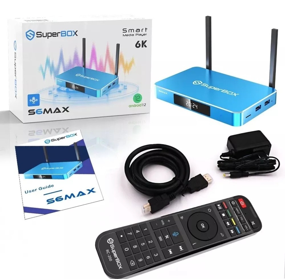 Introducing the Superbox S6Max, a powerful media streamer that offers stunning 4K resolution and HDR10 support. With a Quad Core processor, this device provides seamless playback of your favorite movies and TV shows. The unit comes in a beautiful blue color and is part of the Amazon Fire product line. This 6th generation box includes Dolby Digital surround sound formats and connects to your home Wi-Fi network. It also features a web browser, keyboard controller, and is firmware upgradeable. With 64 GB of storage capacity, you can store all of your media on the device. Plus, it comes with a 1-year manufacturer warranty.