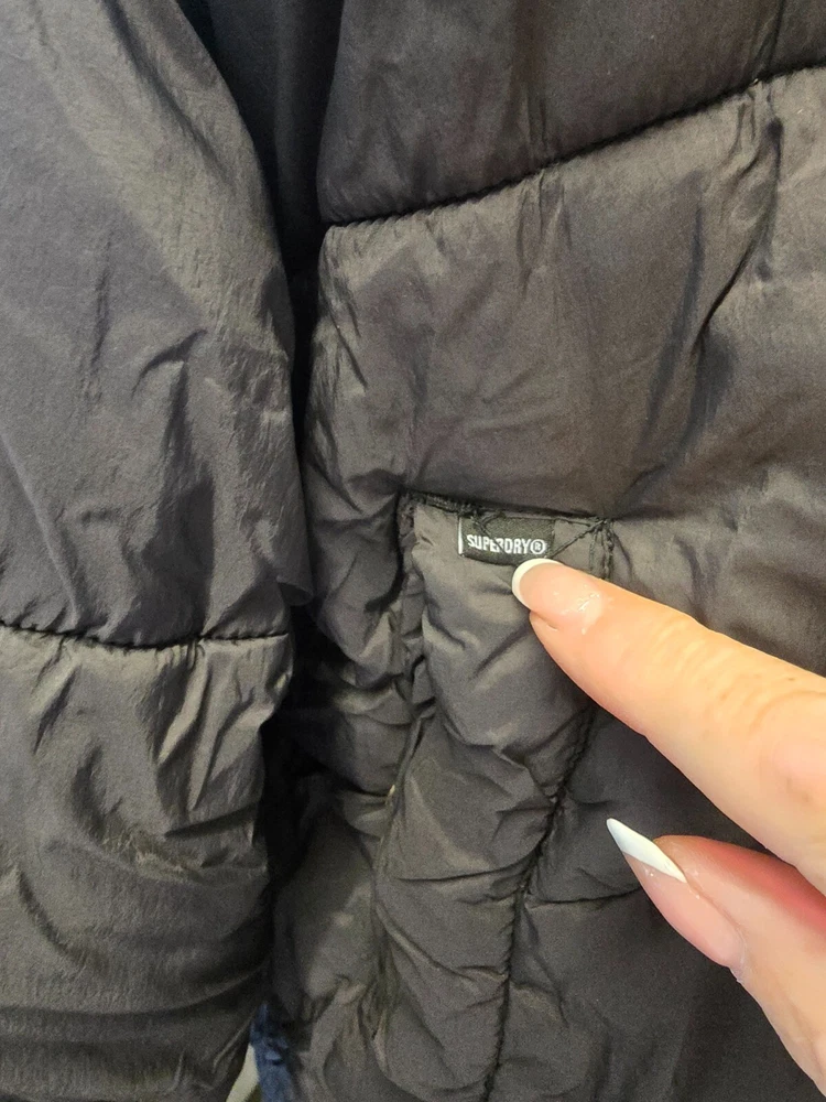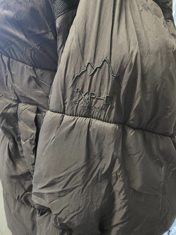 SUPERDRY CODE SPORTSWEAR XP-D WINTER PADDED HOODED COAT BLACK ZIP/SNAP FASTENING SIDE POCKETS SD TAG ON 1 POCKET SLEEVE LOGO UK 16 PIT-PIT 24" NICE CONDITION I FLATTEN TO POST SO WILL NEED SHAKING OUT TO REDISDRIPUTE THE FILLING KEEPS POSTAGE COSTS DOWN