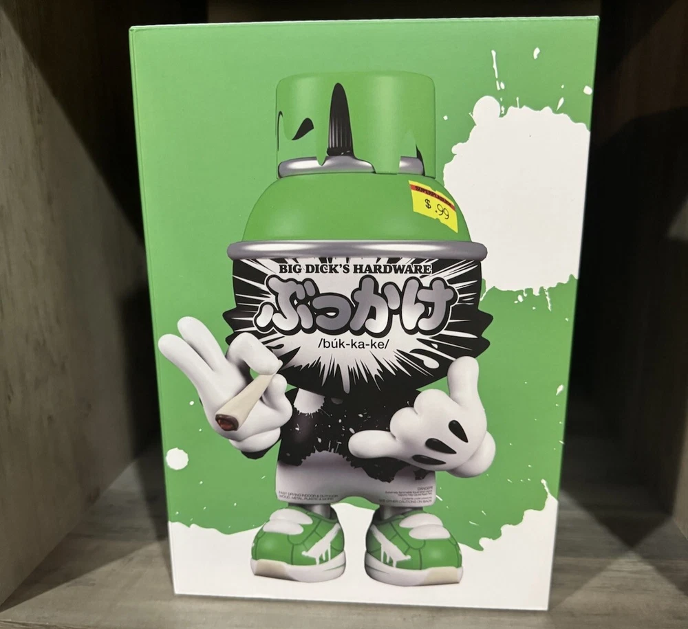 8-INCH Pakalolo Green is the highest edition of the five-part toy series created by legendary LA graffiti artist OG Slick. This limited edition piece comes finished in Superplastic soft vinyl, featuring Slick’s signature hands holding a joint and a cap revealing an electroplated silver chrome spray nozzle. Shake to hear the real rattle sound. Limited to 888 made.