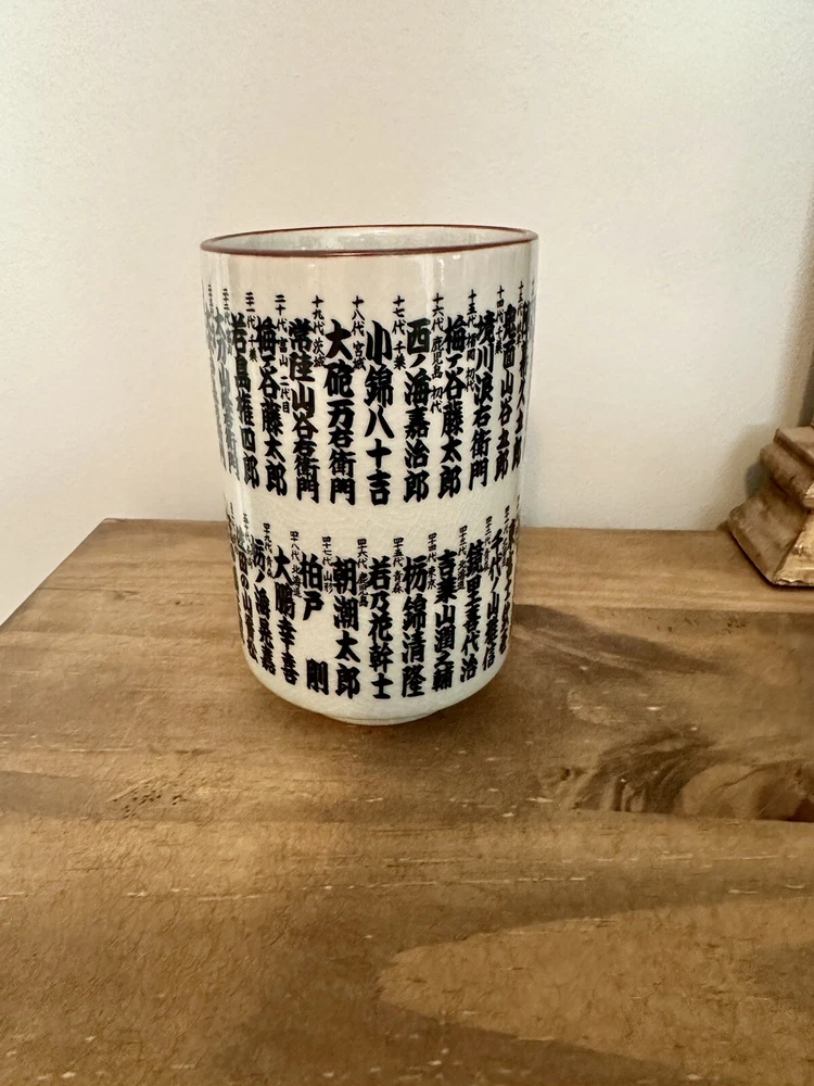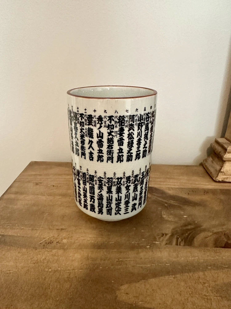 This Japanese ceramic tea cup is perfect for any occasion. Its round shape and large size make it ideal for hot or cold beverages. The cup features a beautiful Kanji pattern on a white background, adding a touch of elegance to your tea time. Made in Japan, this vintage cup is a must-have for collectors. It is made of high-quality ceramic and porcelain materials, ensuring its durability. The set includes one tea cup, perfect for your daily tea ritual. Add a touch of Japanese culture to your home with this stunning tea cup. No chips or cracks