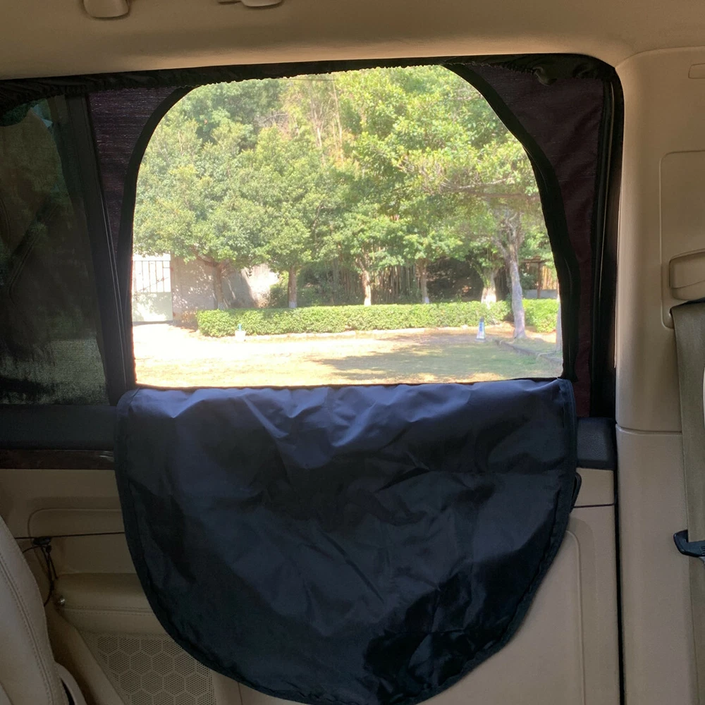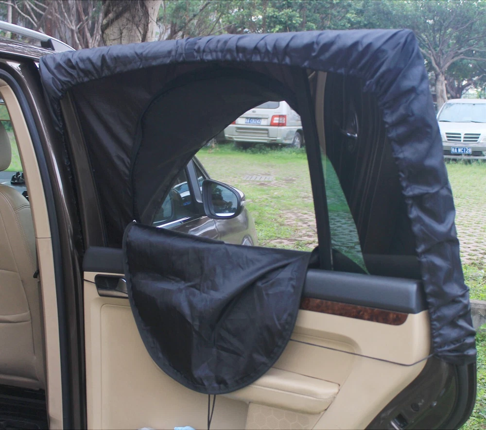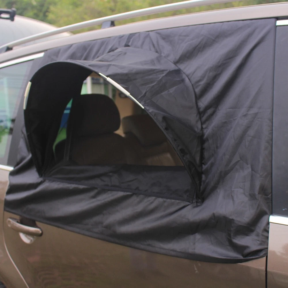Sleeping in Car fresh airflow in and keep bugs and insects out Installs easily by stretching around the perimeter of the door Screen mesh can't be open but the inside cover can be open with zipper Universal fit both sides. Door Width- (Max 44" Min 30")-Window Height (Max 30" Min 20") 2 units per pack. water repellent fabric.