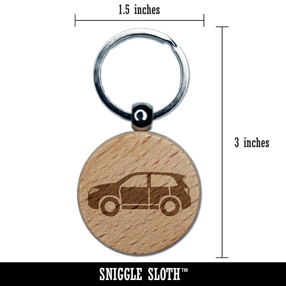 SUV Sports Utility Automobile Vehicle Engraved Wood Round Keychain Tag Charm
