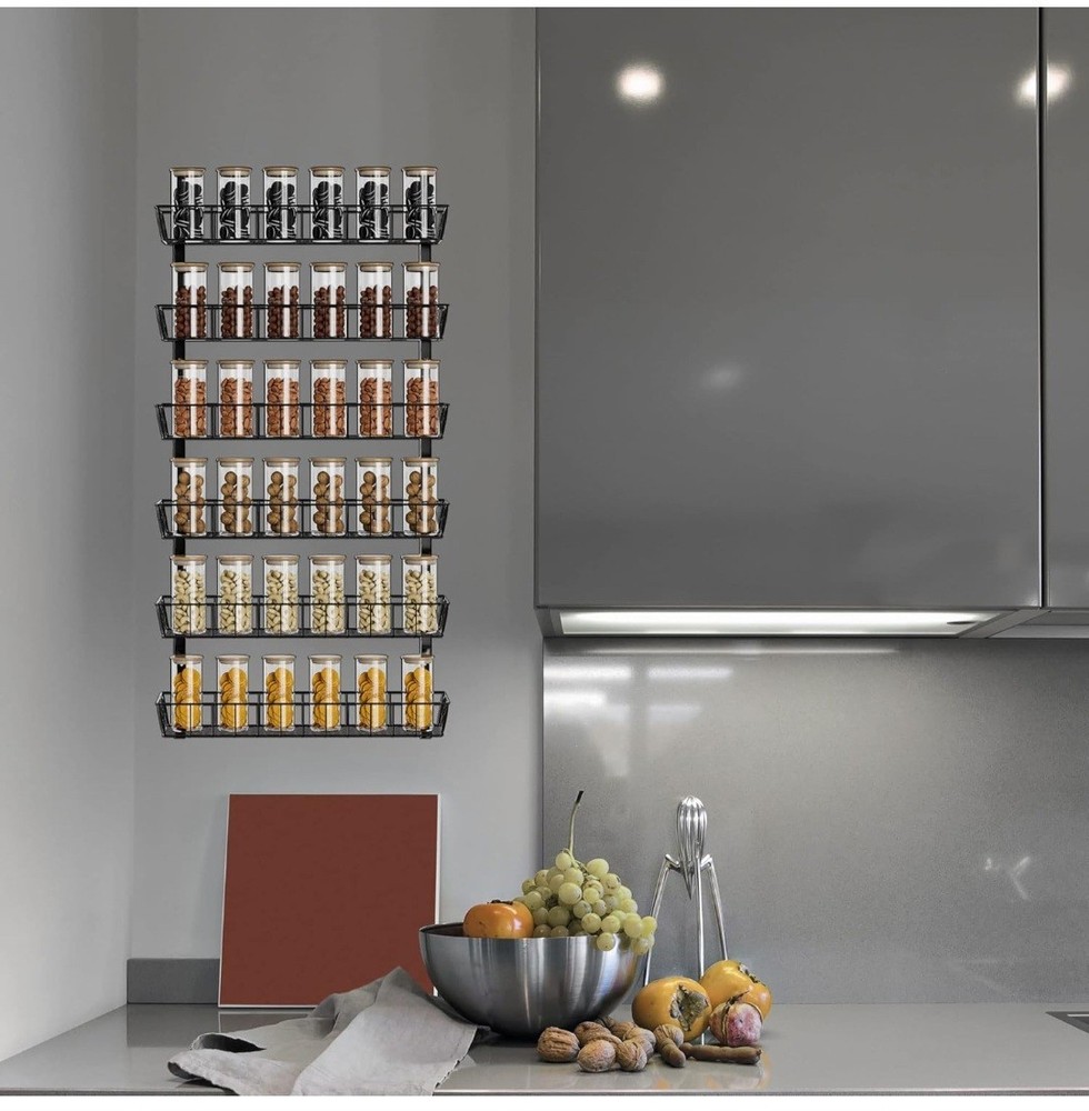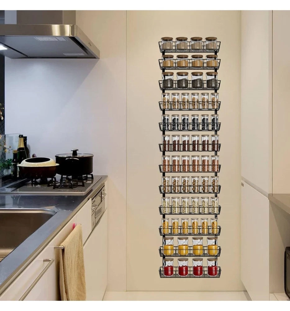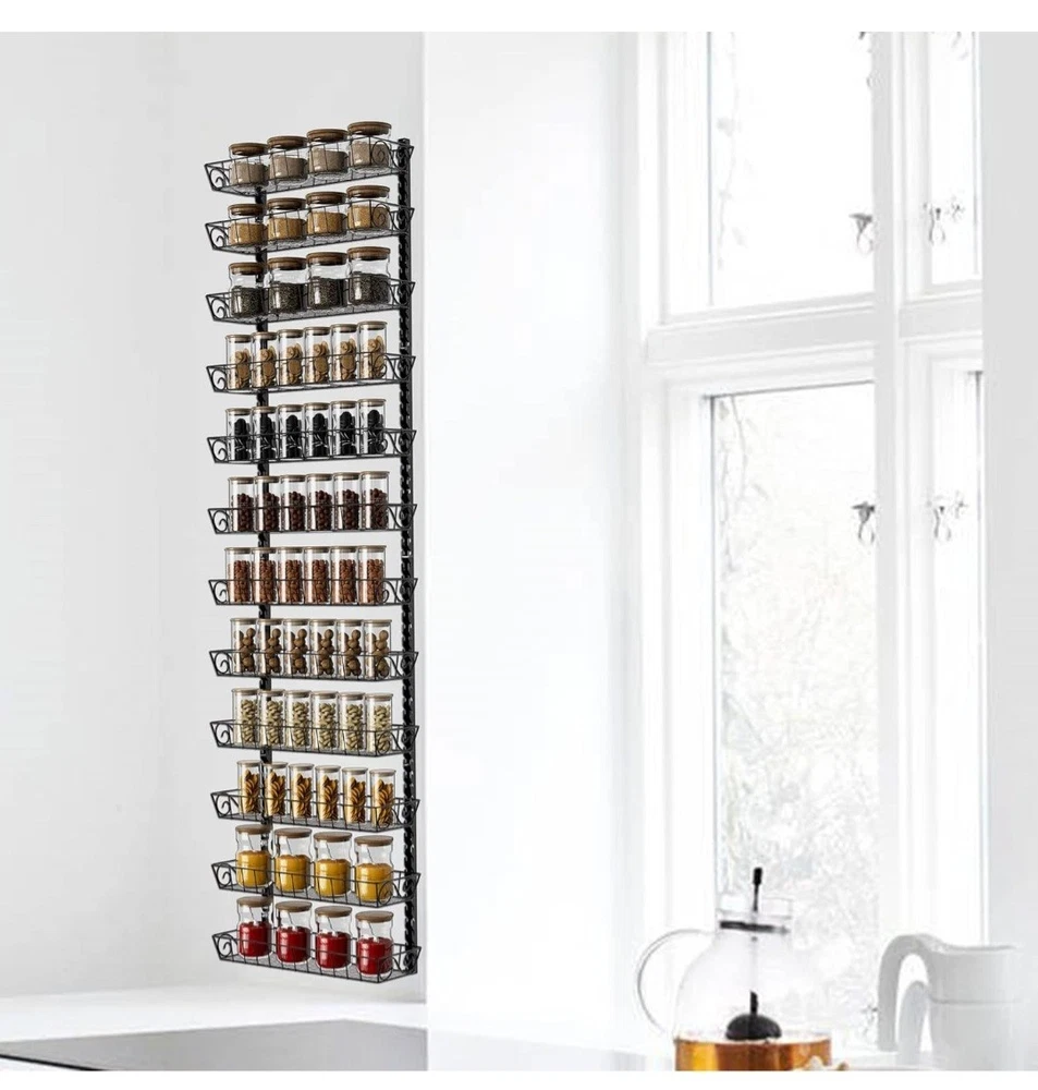 SWOMMOLY Adjustable Wall Mount Spice Rack Organizer, 12-Tier Dual-use (Multi-use) Hanging Spice Shelf Storage for Kitchen Pantry Cabinet Door, Seasoning Holder Organizer, Black #49.4.25