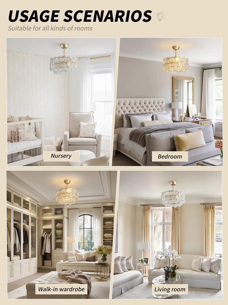 Absolutely love this fan—it’s a stunning mix of modern elegance and function! The gold and crystal combo brings a glamorous mid-century vibe to my living room, and it actually cools the space well. The light adds a warm, dreamy glow, perfect for relaxing. Installation was smooth, but customer support was ready to help if needed (thankfully, no issues!). Super impressed with how it elevates my decor while being practical. Would 100% recommend!