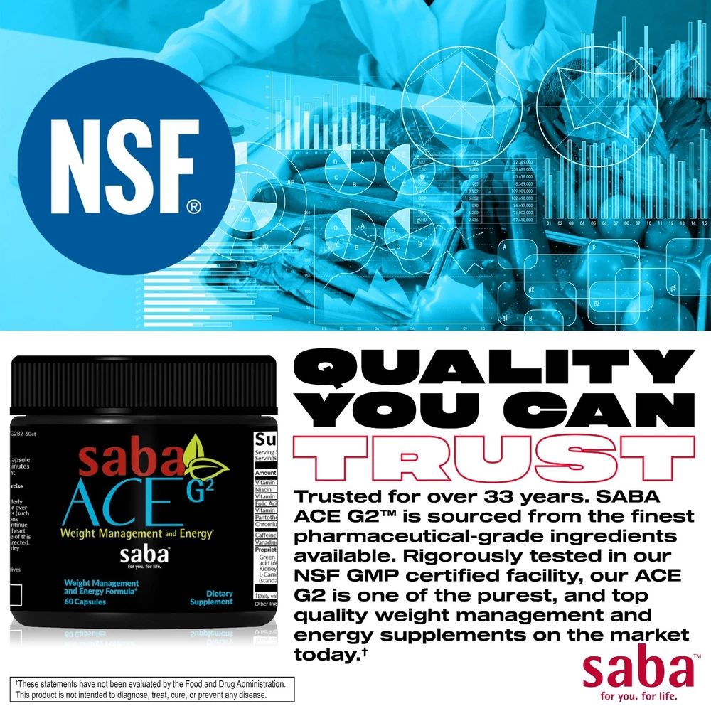WEIGHT LOSS & BURN BODY FAT: Saba ACE g2 is a cutting-edge thermogenic weight loss and fat burner for men and women. Each capsule contains an effective dose of the most powerful thermo weight loss and fat-burning ingredients available. Its synergistic formula helps to burn fat, increase energy, preserve lean muscle, suppress appetite, boost the metabolism, and improve mood. Maximize your body transformation and see results fast with this powerful weight-loss supplement. ENERGY BOOSTER & APPETITE SUPPRESSANT. Conquer your day and crush your workouts with jitter-free energy, enhanced focus, and an improved mood. If you?re looking for the best appetite suppressant that works, the search ends here. Keep food cravings in check and your diet on track with these innovative energy and weight management formula. SCIENTIFICALLY-FORMULATED ENERGY & WEIGHT MANAGEMENT. Saba ACE G2 was created using only the best weight loss ingredients in effective doses to help you lose weight. By targeting the fat burning process through multiple pathways in the body. cGMP USA MANUFACTURING. Saba is an FDA registered and NSF audited facility. All of Saba's are manufactured in a state-of-the-art cGMP facility. We guarantee that you are getting the purest, safest and highest quality products on the market. SATISFACTION GUARANTEED. We guarantee your satisfaction. If for any reason at all you aren't completely satisfied with your results from this best selling energy and weight loss supplement we will work to resolve your concern. Real Results: Stop settling for supplements that simply don't work. Saba ACE G2 is one of the best selling weight loss products on the market. It is engineered for perfection, our one-of-a-kind nutraceuticals help you hit the spots you need help me most. Feel a clean surge of energy, enhanced focus, and appetite control to help keep your diet in check. Saba ACE G2 is made with the best best ingredients, efficacious doses, total label transparency, and contains no artificial fillers, preservatives, or food dyes. How to Use Saba ACE G2: Directions: As a dietary supplement, adult take 1 capsule in the in the morning and 1 capsule earl afternoon 10 to 15 minutes after a small meal.