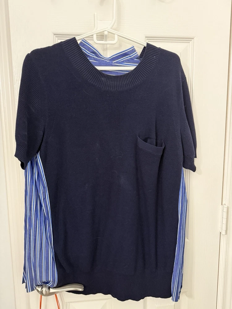 Sacai Knit short sleeves Sweater pleated back Blue Size 4/XL