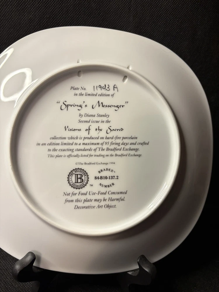 Crafted with precision, the "Springs Messenger-Visions Of The Sacred" collector plate is a testament to the artistry of the late 20th century. With its vibrant multicolor palette and ornate decorative style, this piece is a stand-out example of American art pottery from the 1990s. Produced by Bradex, the plate is made from high-quality porcelain and boasts a unique production style that emphasizes intricate details and fine craftsmanship. Whether displayed as part of a collection or as a standalone piece, it captures the essence of the era and celebrates the cultural richness of its time.