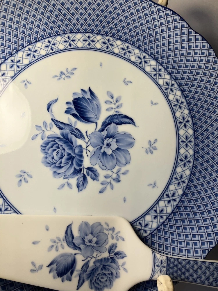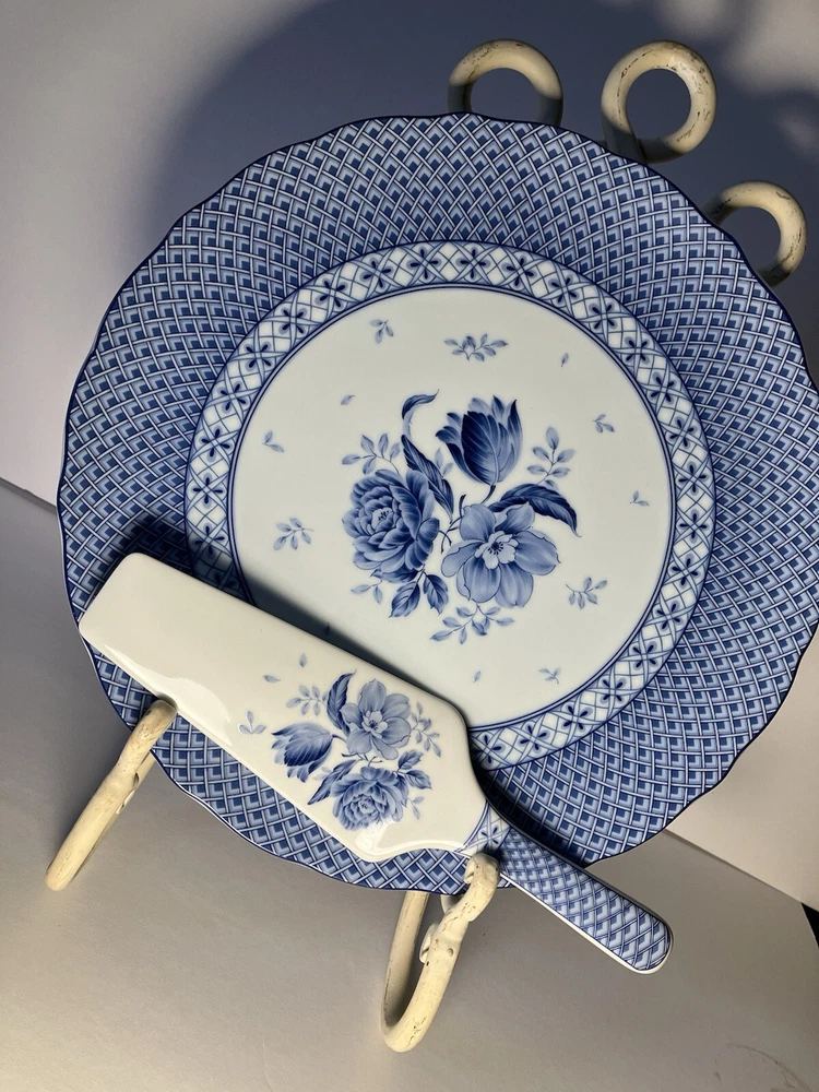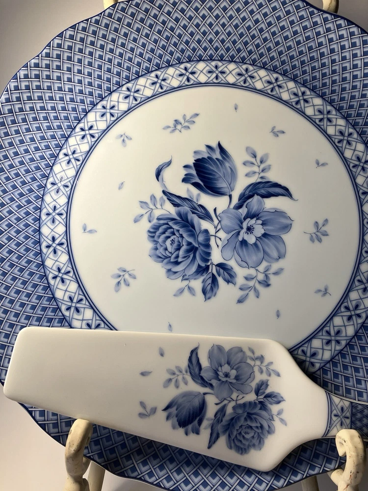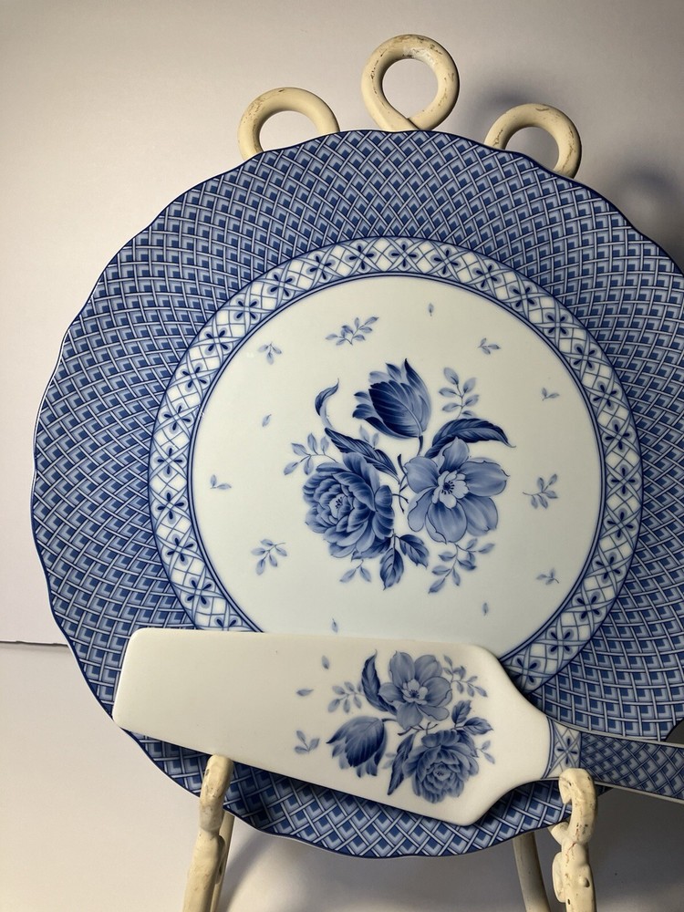Sadek Andrea Blue Rose Porcelain Cake Plate Serving Set