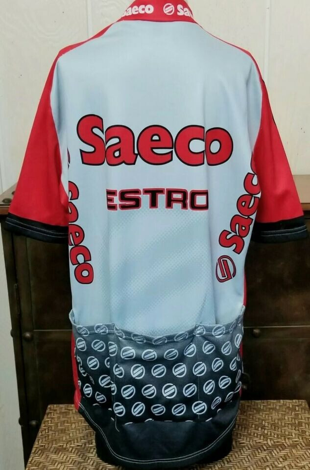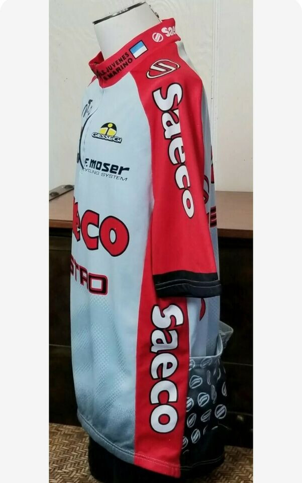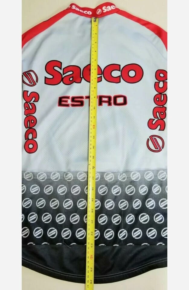 An Incredible one time opportunity to own this collector Saeco Team 2003 Cycling 1/4 Zip S/S Jersey Estro Giessegi Size (M 4) Chest 38-1/4" See last photos for zipper pull tab wear, tiny snag areas, small faint spots front and snag area at top of back pockets ***PIT TO PIT IS 19-1/8" ***VIEW ALL MEASUREMENT PHOTOS FOR PROPER FIT**** Explore the in depth photos showing every angle possible as if you have it in your hands. Thank you from all of us at DPACTIVEXPRESS ***Note 1: Display stands not included with all items unless specifically stated in the title. ****Note 2: DPACTIVEXPRESS carries a diverse collection of brands in this category, so we take a pit to pit measurement photo. ~~~~~~~ITEM IN THE LISTING PHOTOS IS THE ITEM YOU WILL RECEIVE~~~~~~~~~~~