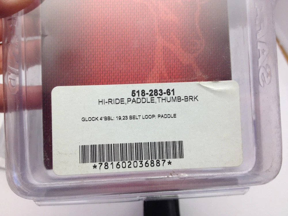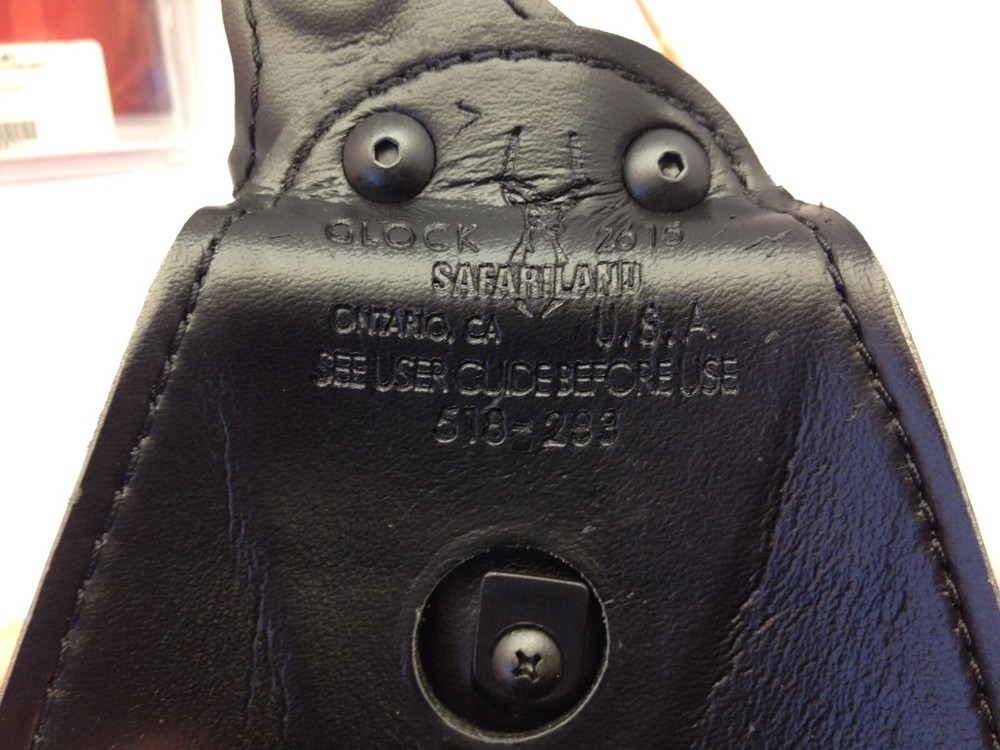 Safariland 518-283-61 Glock 19/23 Leather Holster OWB paddle RH Thumb Break * For Glock 19 & 23 * Brand New in Package * Right Handed * Thumb Break * Leather plain black * Hi Ride * OWB paddle holster See all photos for more details. Thanks