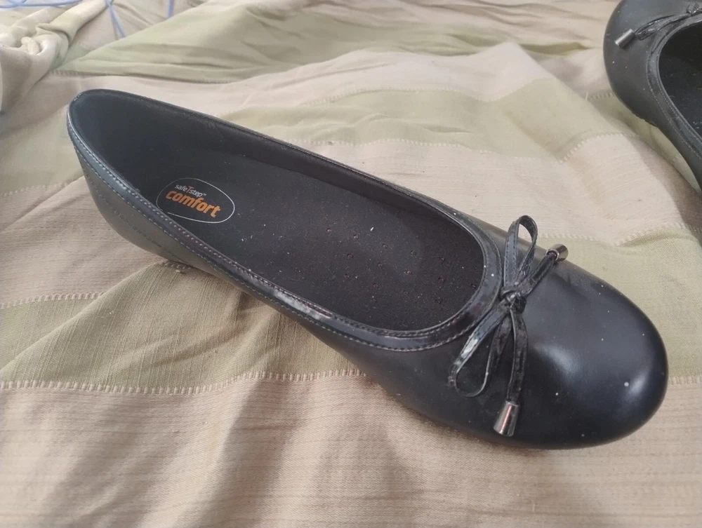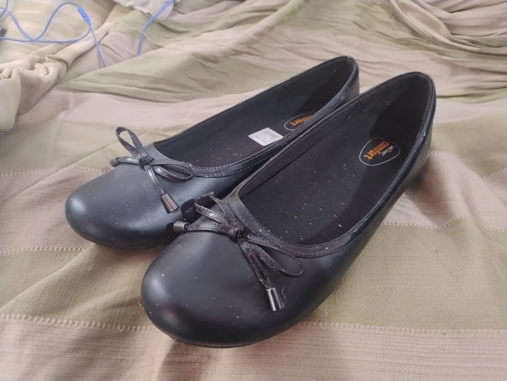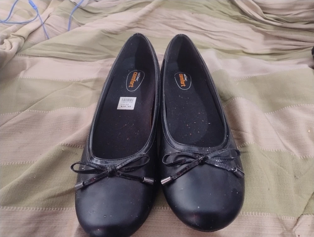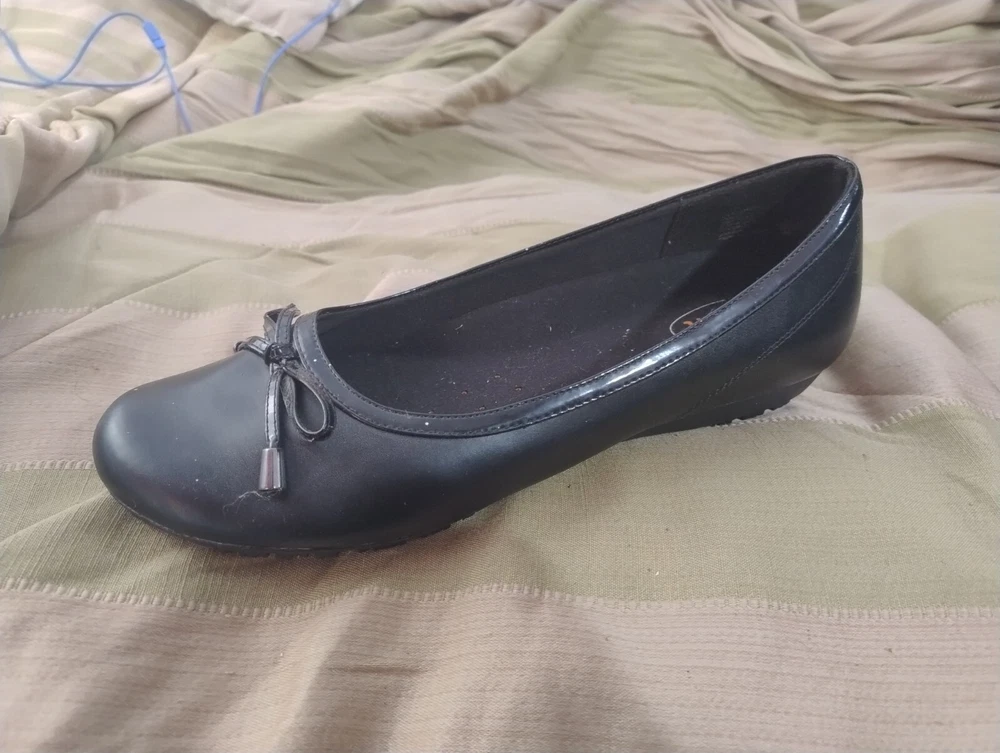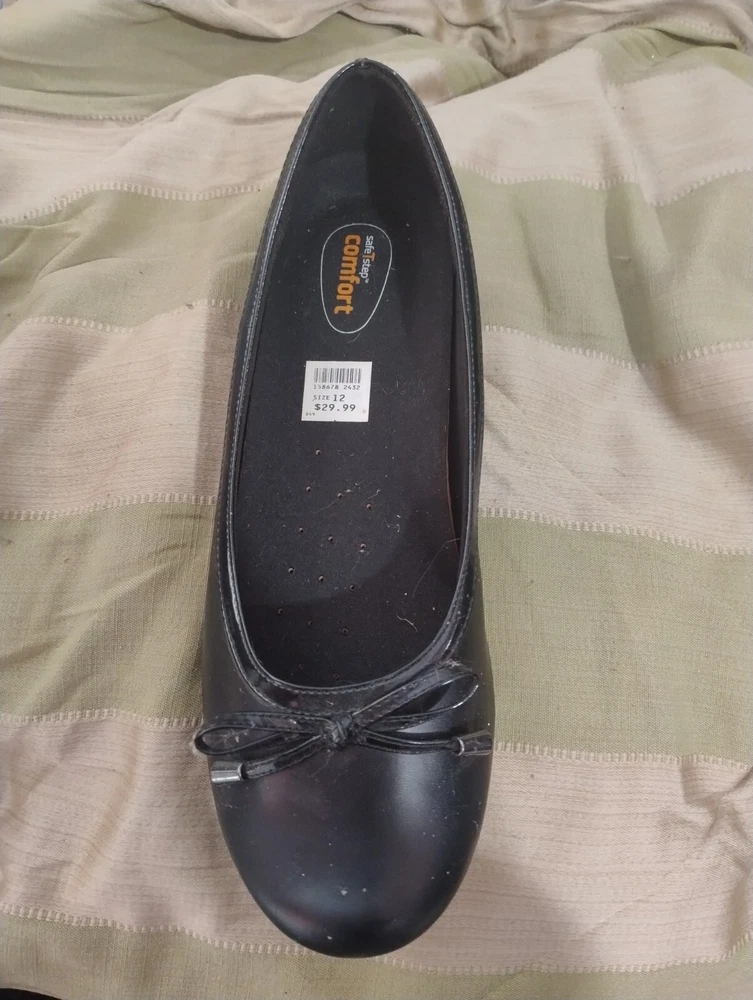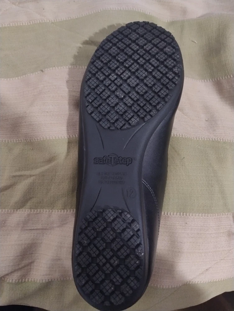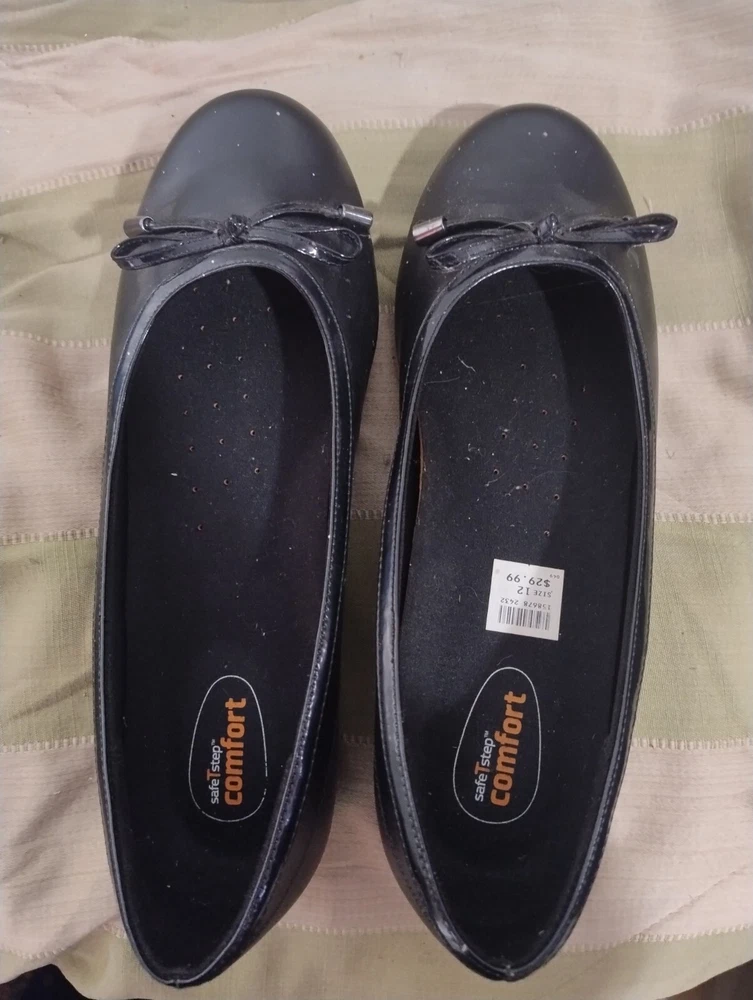Crafted for versatility and comfort, the Safe T Step Samantha Women's Flats are a timeless addition to any wardrobe. Size 12 in a classic black hue, these shoes are a sophisticated choice for a range of occasions, from the office to evening events. The sleek leather upper material offers durability while the slip-resistant feature ensures stability on any surface.Whether you're dressing for casual outings, travel, or cocktails, these flats cater to both formal and informal settings with ease. The EU size 43 and UK size 10 equivalents ensure a comfortable fit for a variety of foot shapes. With their elegant style and practical design, these Safe T Step flats are a must-have for those who value function without compromising on fashion. The flats was only worn once or twice, but it has been sitting inside the storage room for a long time. Let me know if any questions before bidding or buying.