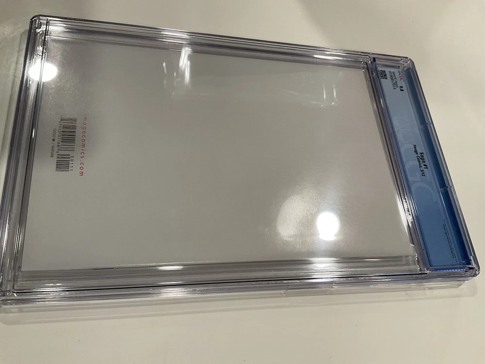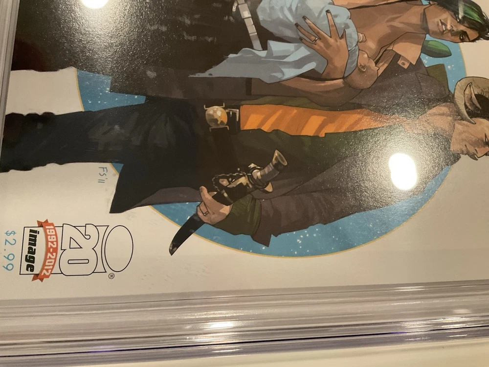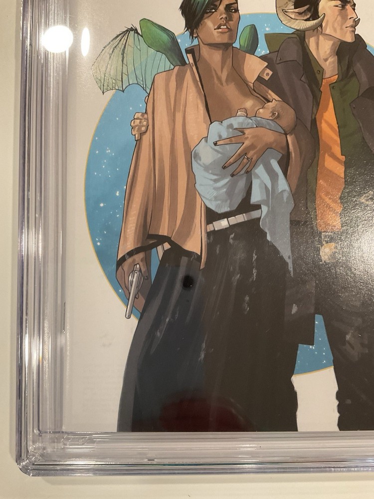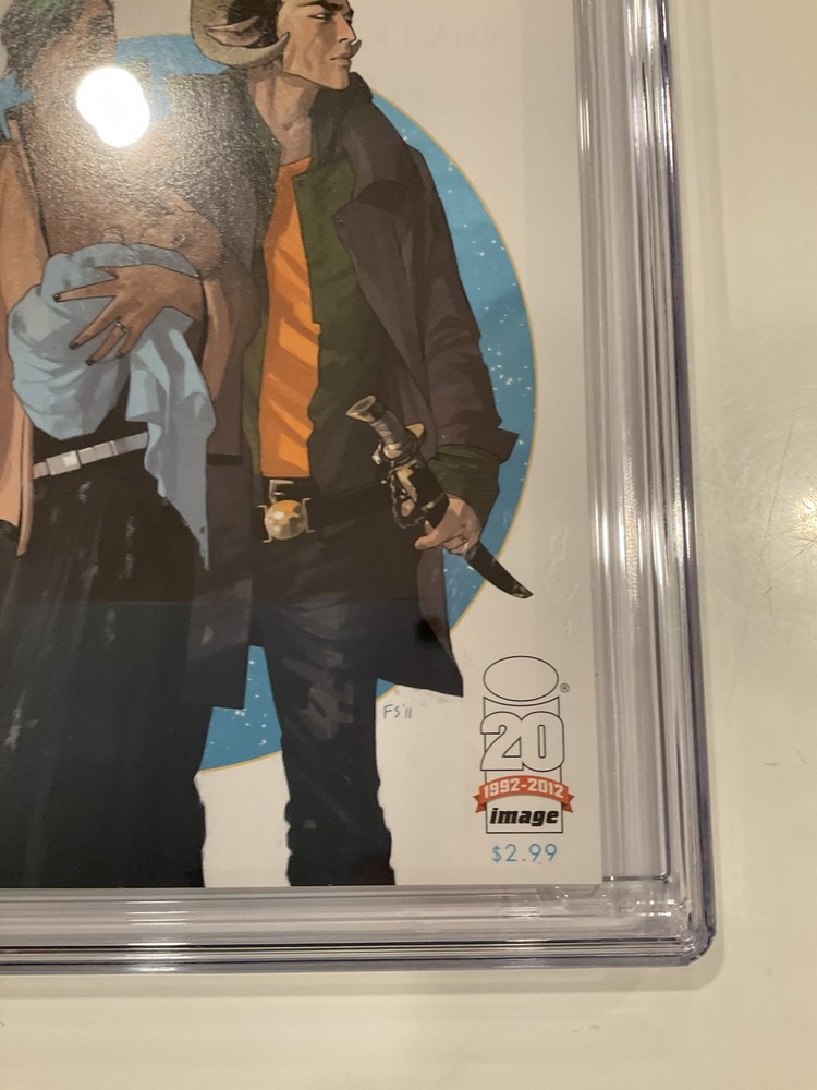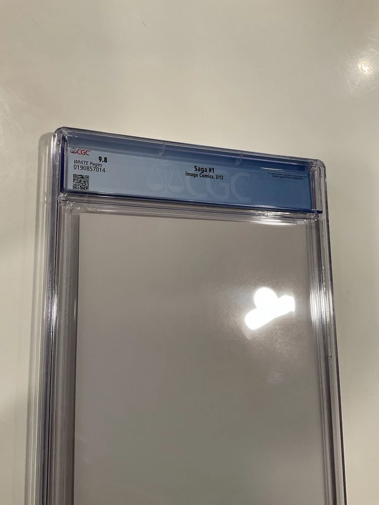 The product is a highly collectible first print CGC 9.8 graded Image Comics key first appearance of the series "Saga" by Fiona Staples and Brian K Vaughan. This comic book, published in 2012, features the characters Marko and Alana in the modern age era of US Comics. The certification from Certified Guaranty Company (CGC) adds value to this sought-after item for comic book enthusiasts and collectors alike.