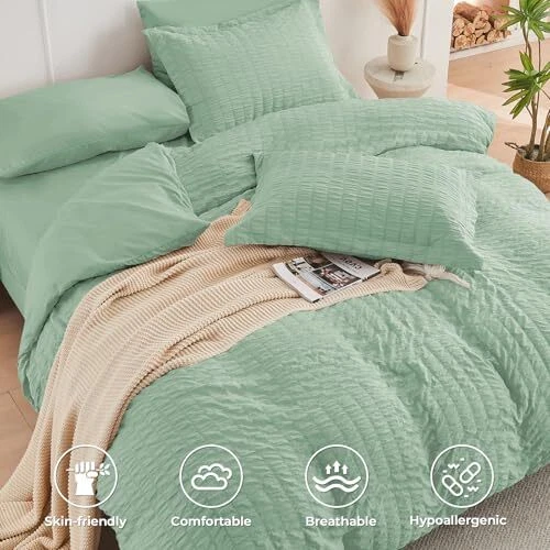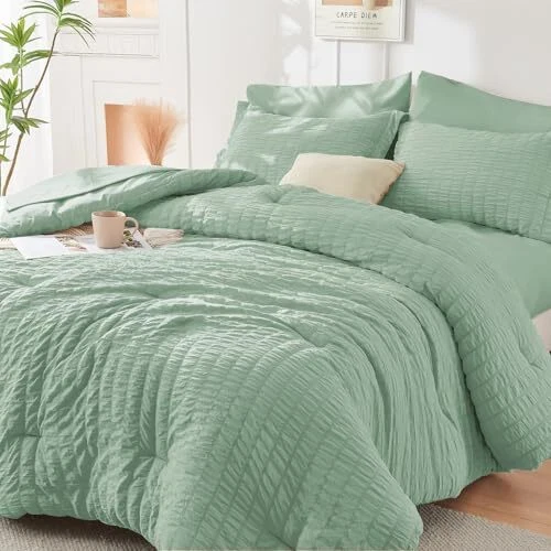Return Policy Fast Delivery Trusted seller Sage Green King Size Comforter Set Seersucker 7 Pieces, All Season Luxury Bed in a Bag for Bedroom, Bedding Set with Comforters, Sheets, Pillowcases & Shams Product Description Certified Safe Fabric: This king comforter set is certified by OEKO-TEX Standard 100, ensuring it meets high safety standards and is free from harmful substances; made from soft microfiber, the interior is filled with premium 240 GSM microfiber, providing a cloud-like sleeping experience suitable for all seasons Anti-Wrinkle Textured Design: Unlike traditional, plain duvet covers, our slightly pleated seersucker texture is both beautiful and delicate; creates a vivid three-dimensional wavy pattern; the striped texture enhances this design, which is wrinkle-resistant and easy to care for; the gentle seersucker queen bedding set adds a unique sense of romance and elegance to your room Deep Pocket Fitted Sheet: Our stretchy deep-pocket fitted sheet easily fits any 12-15 inch mattress and stays in place no matter how you toss and turn; the soft brushed microfiber fabric provides just the right amount of warmth and comfort What's Included: The king size bed set includes 1 Comforter (102" x 90"), 2 pillowcases (20" x 40"), 2 Pillow Shams (20" x 36" x 2"), 1 Fitted Sheet (78" x 80" x 14"), 1 Flat Sheet (108" x 102"); the set is packed in a vacuum bag; simply dry on low heat or gently fluff under the sun to restore its loft Easy Care: Our bed in a bag set is easy to care for; simply machine wash in cold water; if you have any questions or concerns, our customer service team is to help Shipping Returns Payment Shipping Shipping is FREE to all addresses other than APO/PO boxes in the lower 48 states. All our stock ships from US-based warehouses. Shipped via USPS or UPS (depending on location and package weight) Unless stated otherwise, all orders will ship within 24-72 hours of your payment being processed. Check our feedback to see the great reviews of FAST shipping we offer. Returns Seller does not accept returns Payment We currently accept payment via eBay managed payments only. Once payment is cleared, we will dispatch your shipment within 1-3 business days. Please refer to the "Shipping" tab for more information regarding shipping speed to your destination.