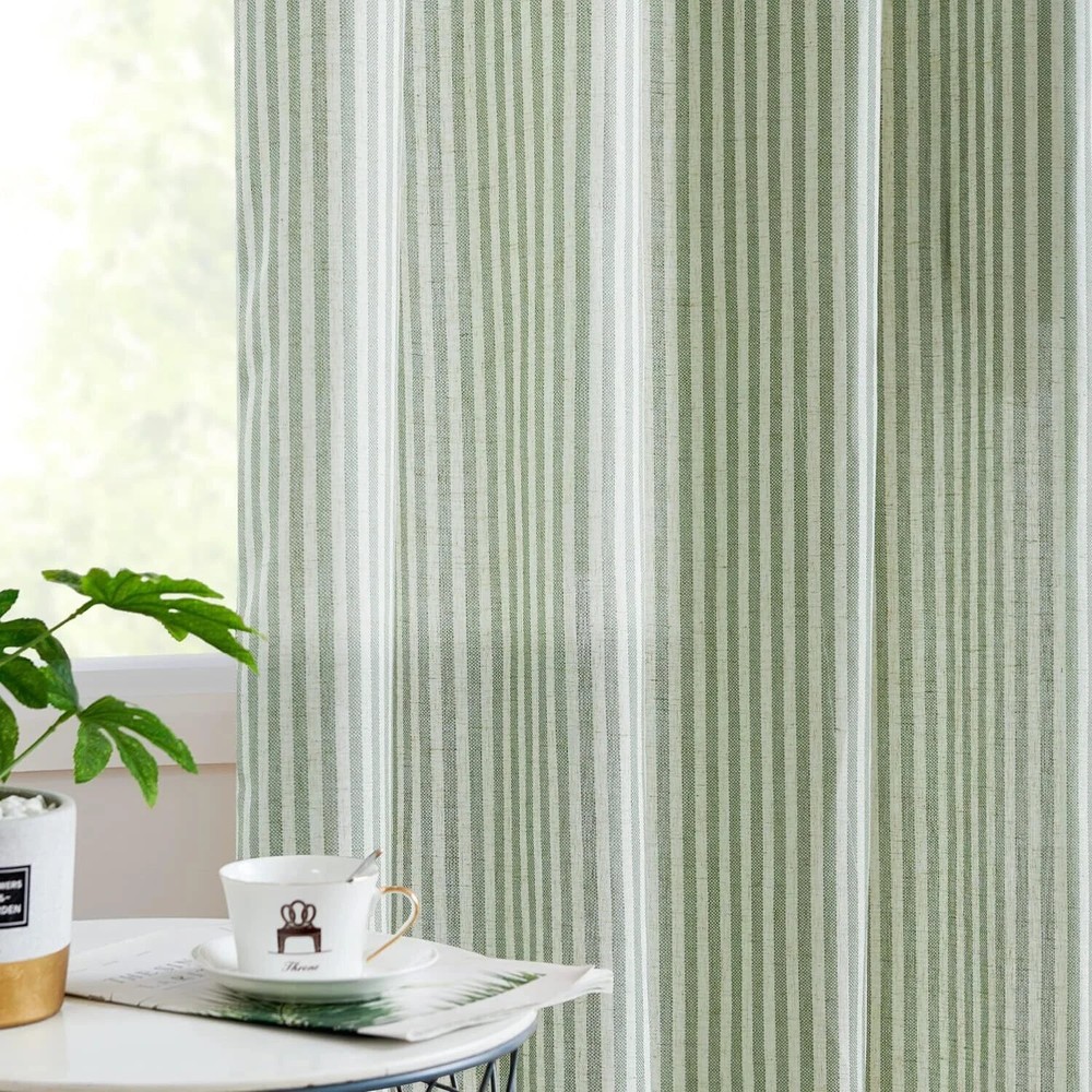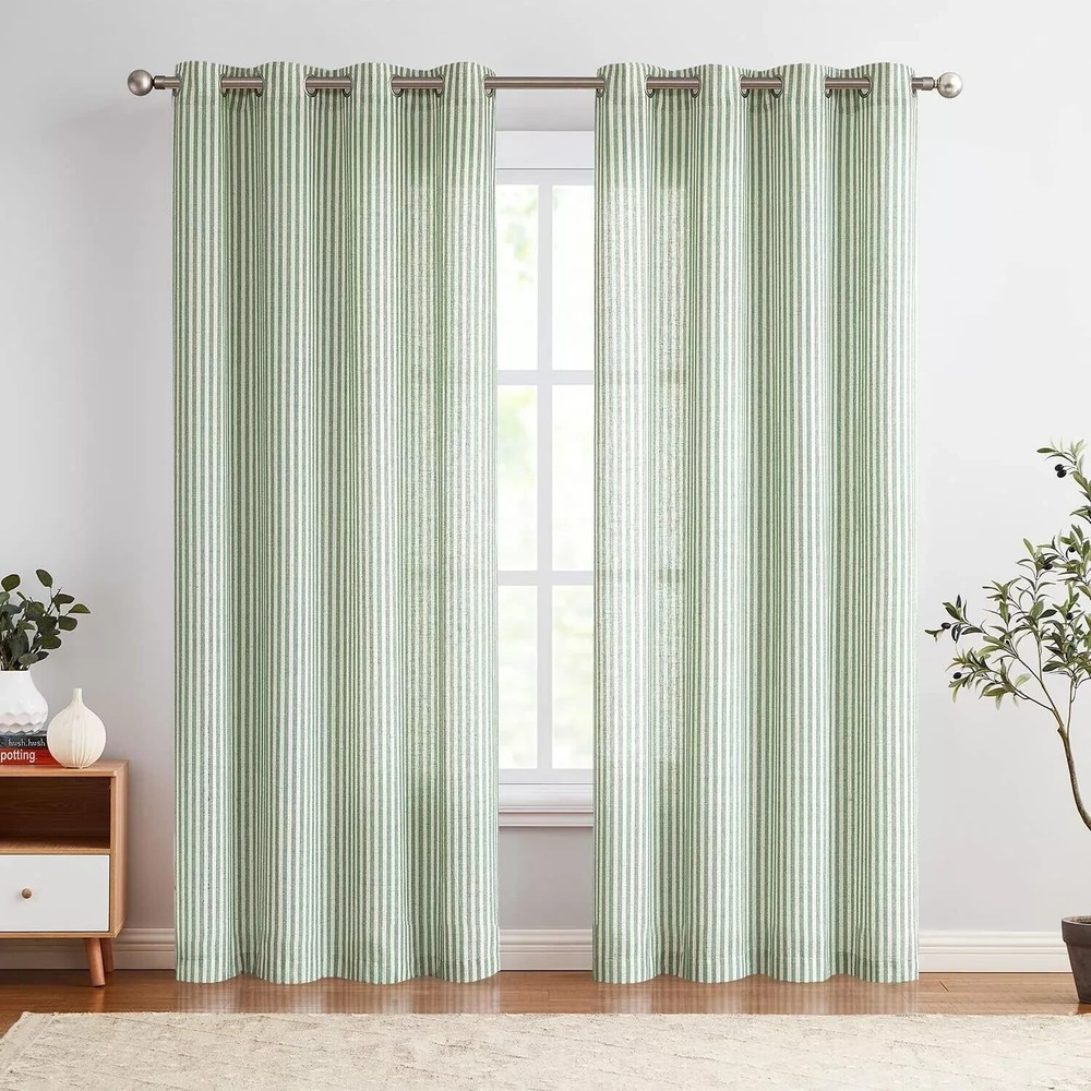 Sage Green Stripe Linen Curtains 84 Inches Long Farmhouse Pinstripe Curtains Lig Elegant Striped Curtains: With two panels in 50"W x 84"L, our curtains feature classic stripes to add a modern touch to your home decor, adding an elegant and stylish feel to your room Light-filtering Fabric: The semi-sheer linen blend fabric is built to last, with strong vertical threads that give it a durable and sturdy feel; It is also soft to the touch and breathable, ensuring both privacy and light filtration while maintaining a cozy atmosphere Effortless Installation: The grommet design makes installation quick and easy, while also ensuring quiet, smooth sliding without the use of cumbersome hooks or rings, making these curtains suitable for any room in your house Versatile Style: Whether you want to accent your living room, bedroom, kitchen, or little ones' room, these curtains are versatile enough to match any home décor or color scheme, providing an effortless way to spruce up any space Shipping We offer FREE shipping on all orders! We ship within Three business days of payment, usually sooner. We use a selection of shipping services such as UPS, FedEx, USPS etc. We only ship to the lower 48 states, no APO/FPO addresses or PO Boxes allowed. Local pickups and combined shipping options are not provided at this time. Return You can return a product for up to 30 days from the date you purchased it. Any product you return must be in the same condition you received it and in the original packaging. Please keep the receipt. Customer satisfaction is very important to us. If you have any problem with your order, please contact us and we will do our best to make you satisfied. Contact Us If you have any queries, please contact us via ebay. We usually respond within 24 hours on weekdays. Please visit our eBay store to check out other items for sale! Thank you for shopping at our store.