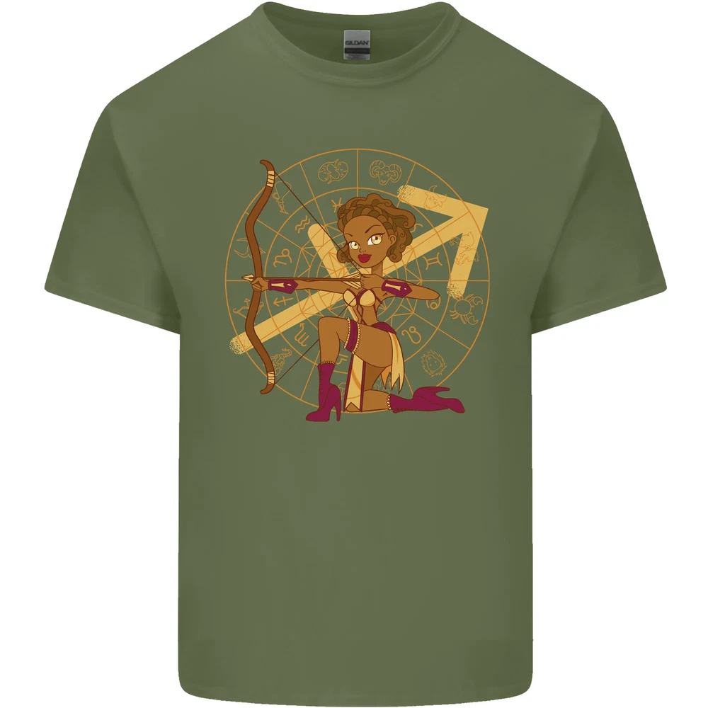 Sagittarius Female Archer Star Sign Mens Cotton T-Shirt Tee Top