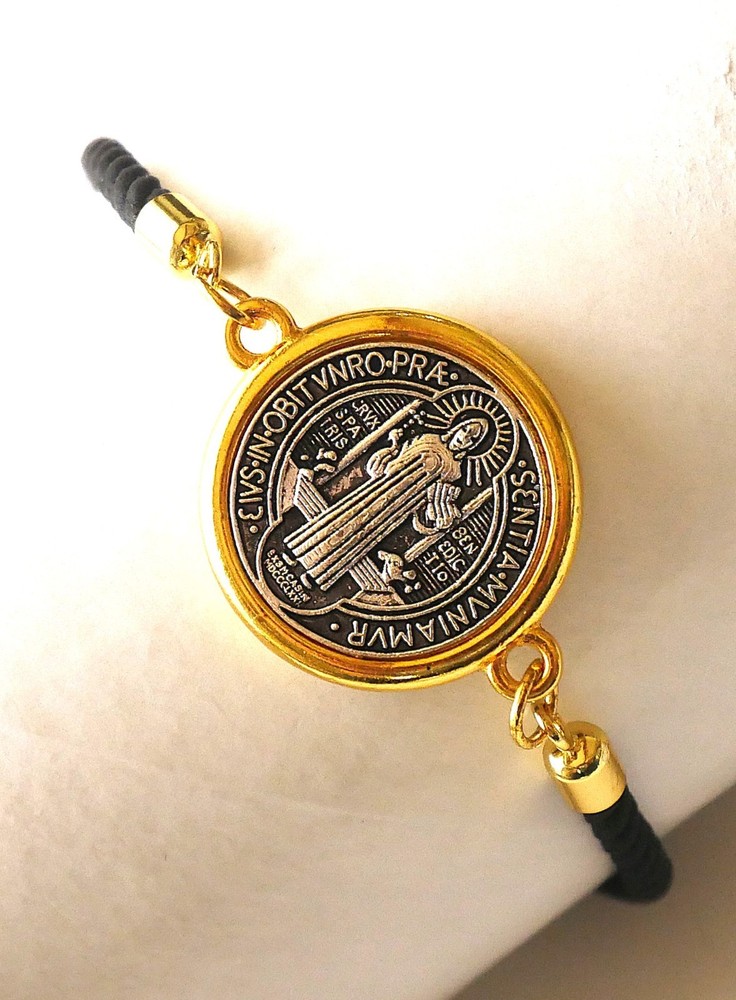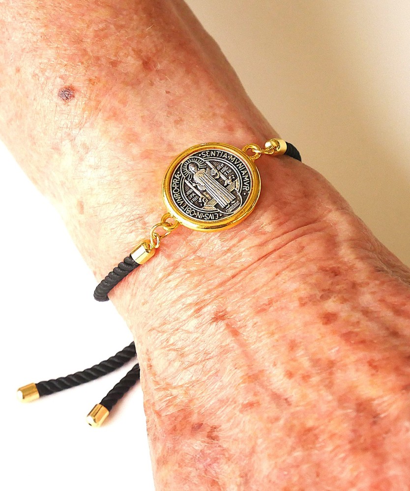 Love this bracelet! The black cord is sleek and durable, and the St. Benedict medal adds a meaningful touch. Perfect size—adjustable and comfortable for daily wear. The gold/silver tone looks elegant, and the craftsmanship is solid. Great for faith-based style or as a thoughtful gift. Highly recommend!
