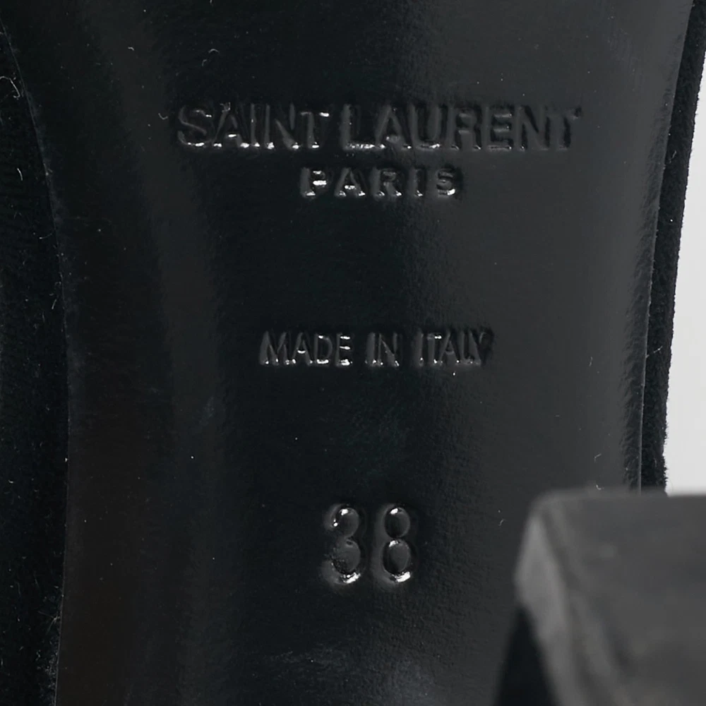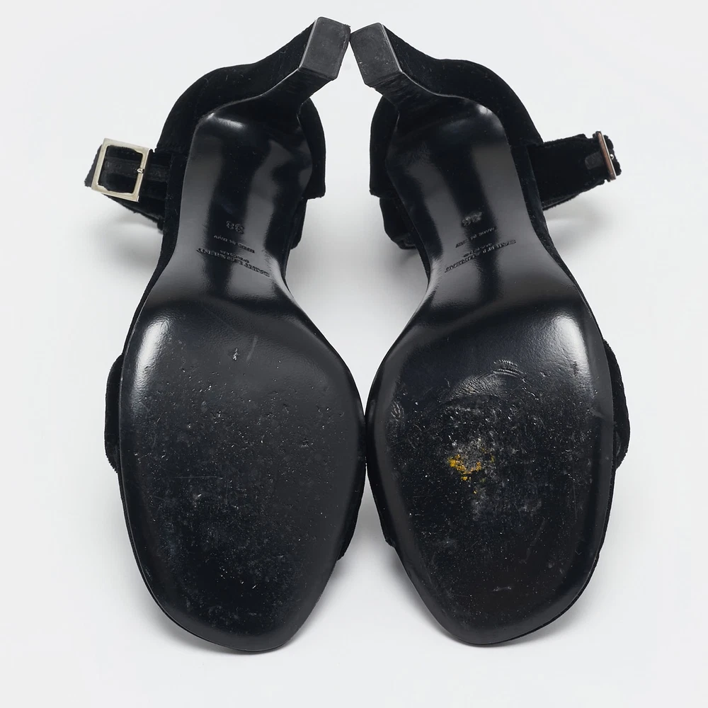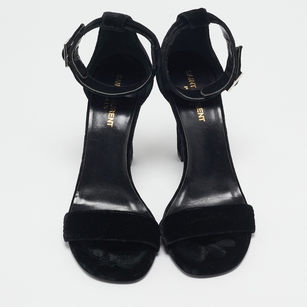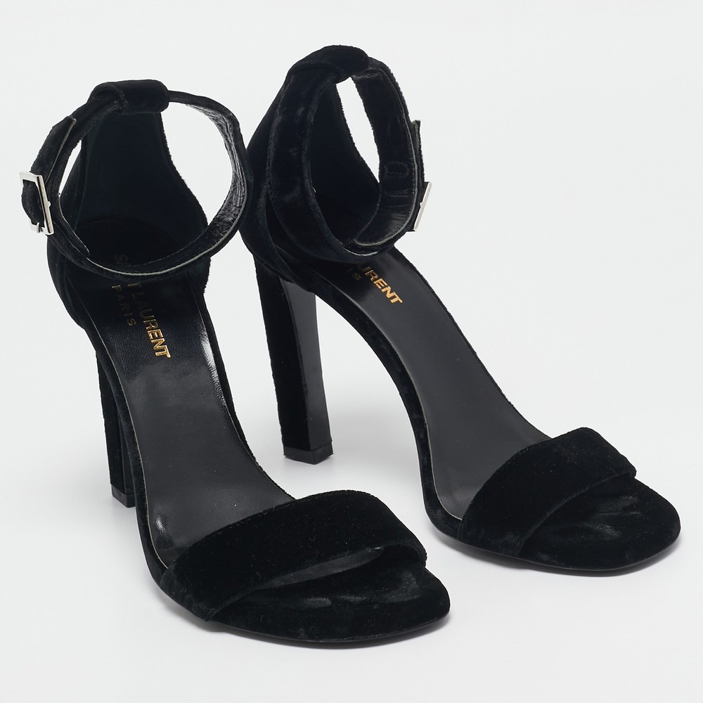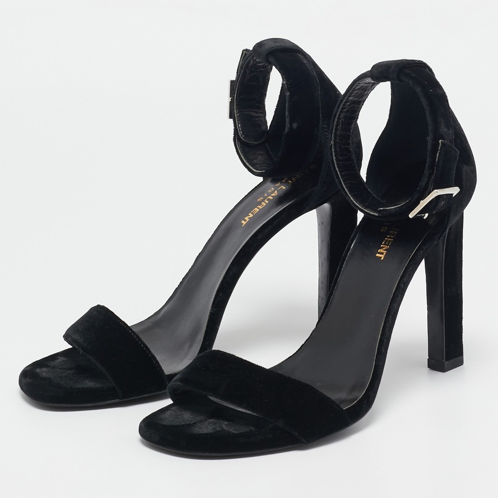 Size: 38 Customized: No Heel Height: 11 cm Department: Women Material: Velvet Brand: Saint Laurent Paris EU Shoe Size: 38 Product Type: Sandals Gender: female Seller Notes: “Good - In good condition with  minor marks on exterior, normal wear on sole/insole.” Color: Black Style: Grace US Shoe Size: N/A Upper Material: Velvet