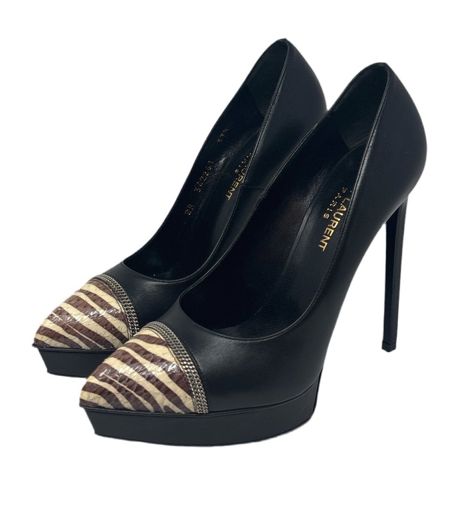 Size: 37.5 Material: Leather Condition: Pre-Loved Color: Black, Tan, Brown, All sales final