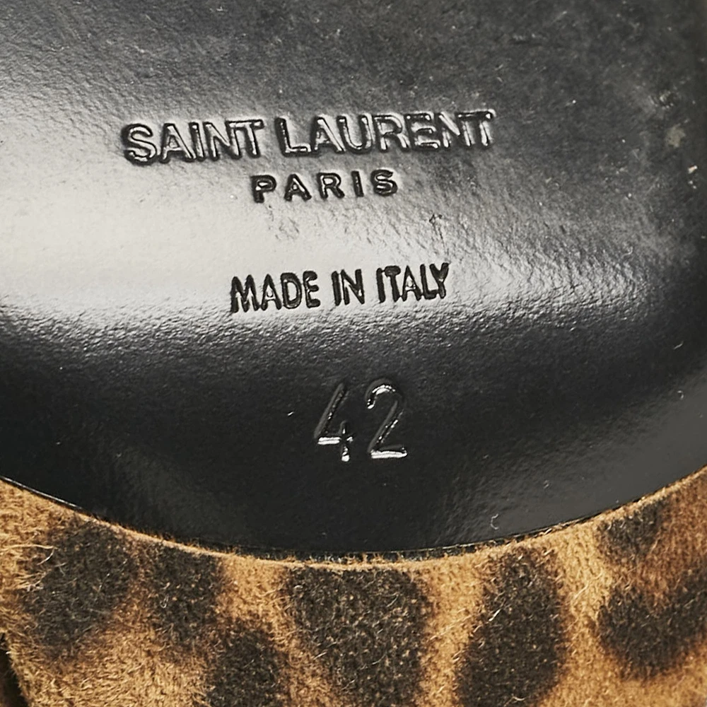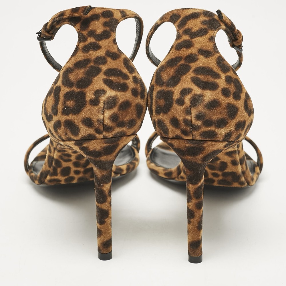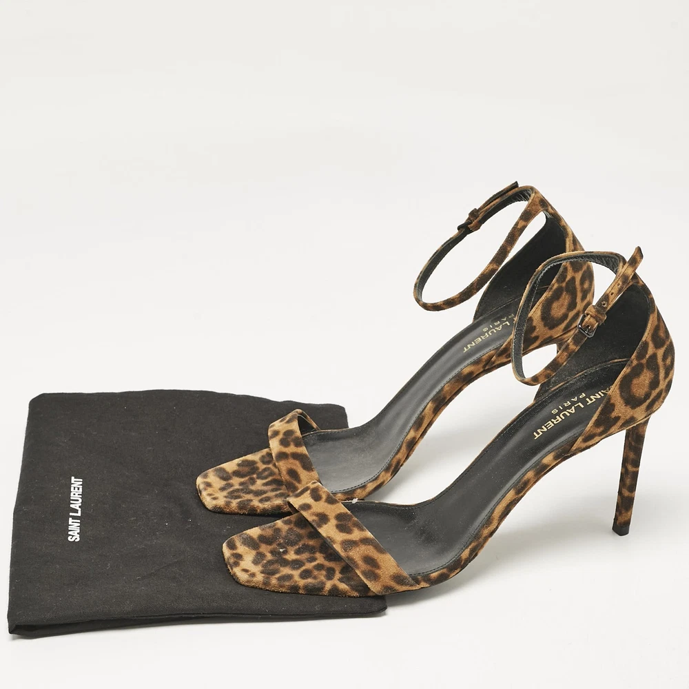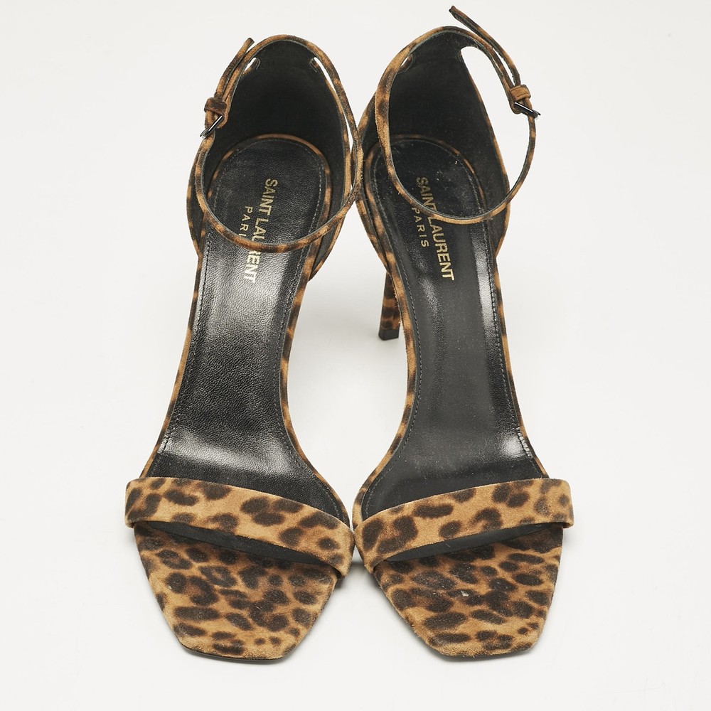 Saint Laurent Brown Leopard Print Suede Ankle Strap Sandals Size 42 EU