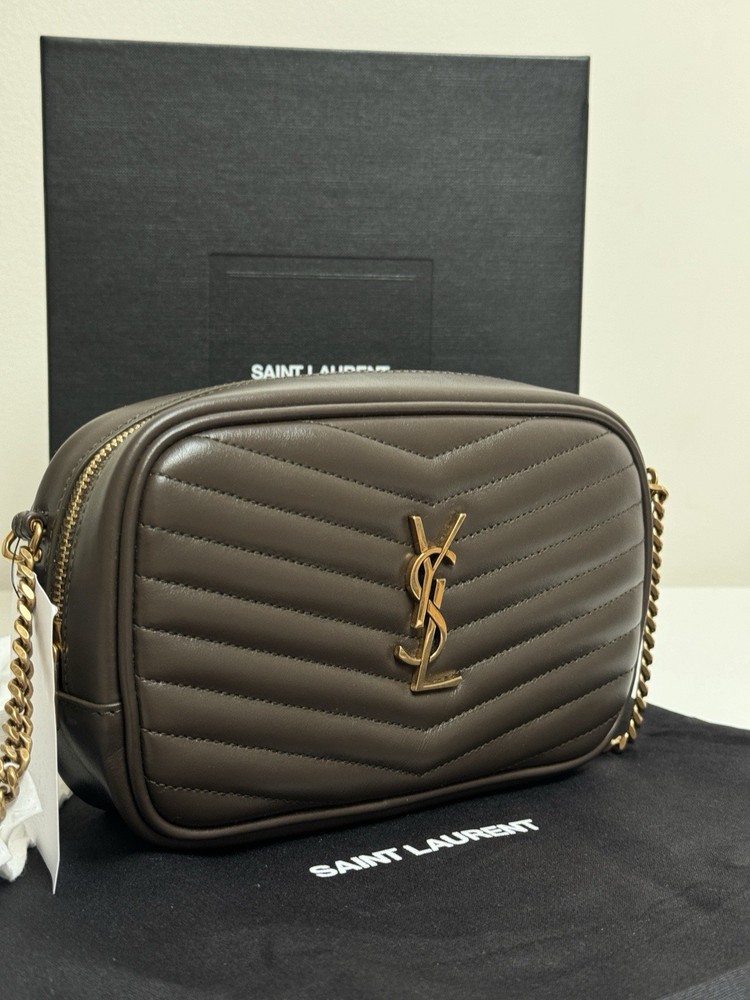 Saint Laurent Mini Lou Beige Suede Camera Crossbody Bag