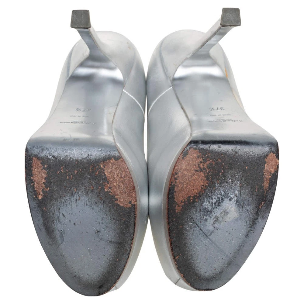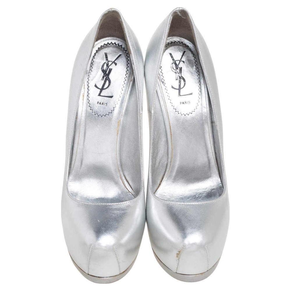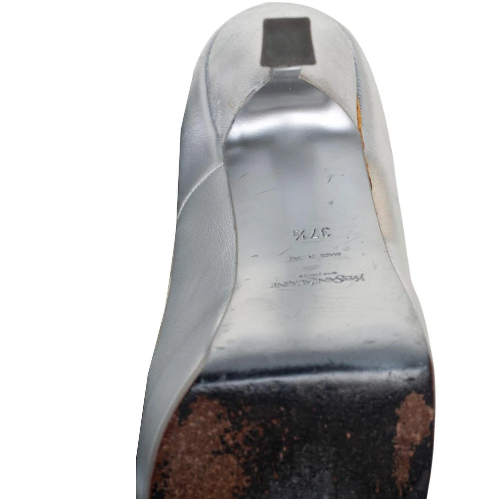 Saint Laurent Silver Leather Tribtoo Platform Pumps Size 375