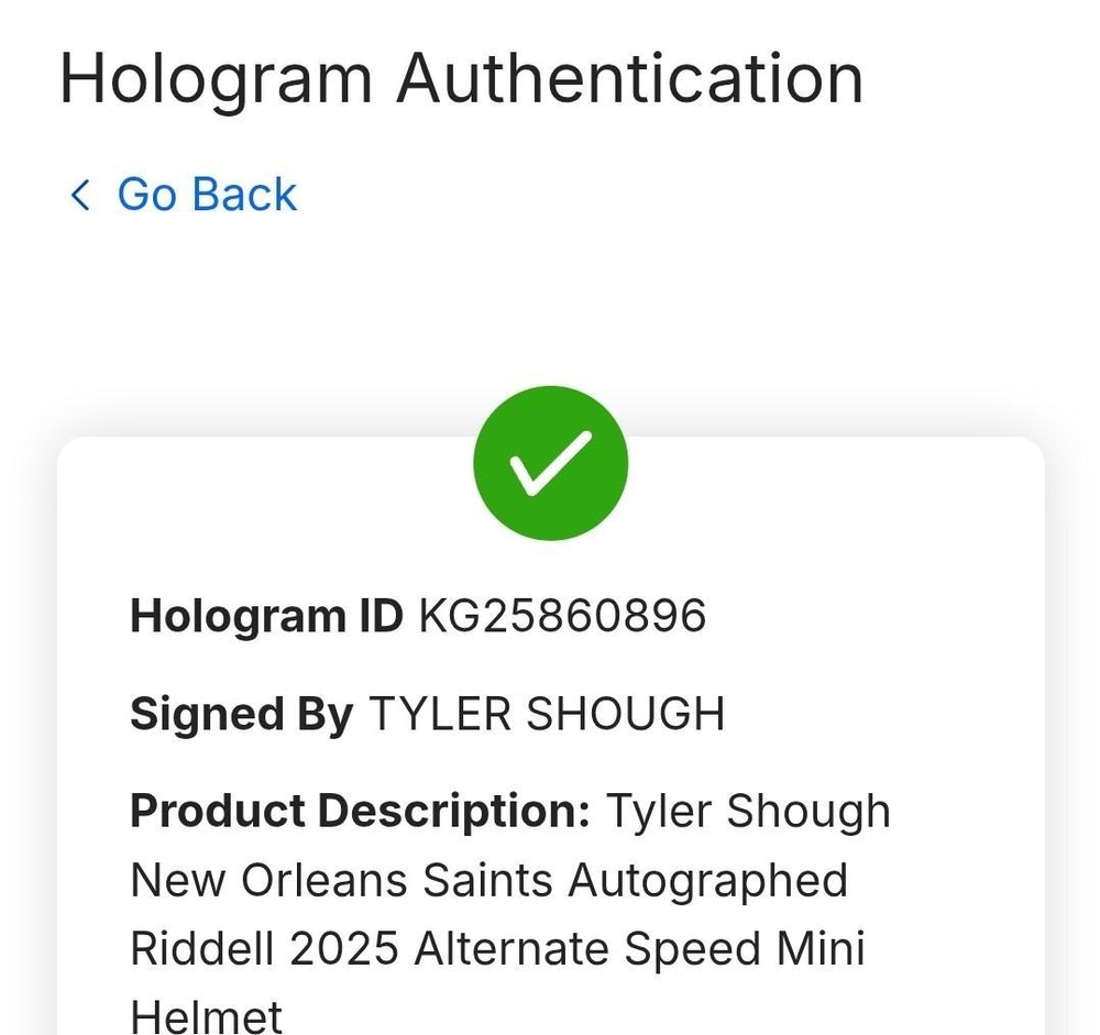 New Orlenas Saints TYLER SHOUGH Signed Auto Mini Speed Helmet FANATICS Coa is from Fanatics which guarantees the authenticity of the signature
