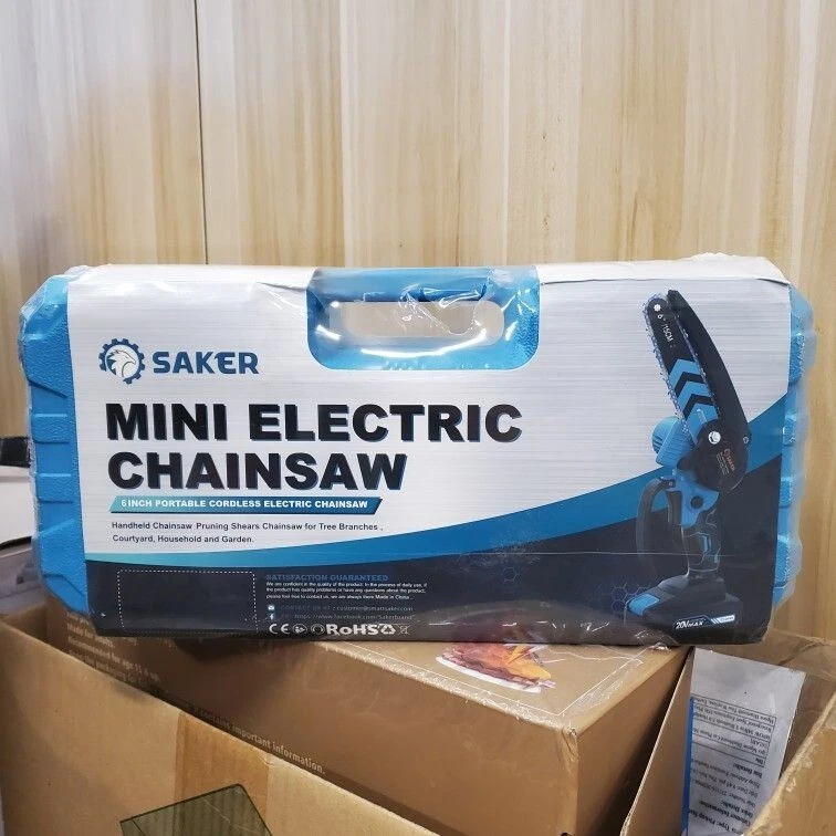 Saker Mini Chainsaw, 6 Inch Portable Electric Chainsaw Cordless, Small Handheld Chain saw for Tree Branches, Courtyard, Household and Garden, By 2PCS 20V 1500mAh Batteries, Extra 2 PCS Chain Model SK1806D Chainsaw speed 780r/min Guido plate length 185mm/7inch