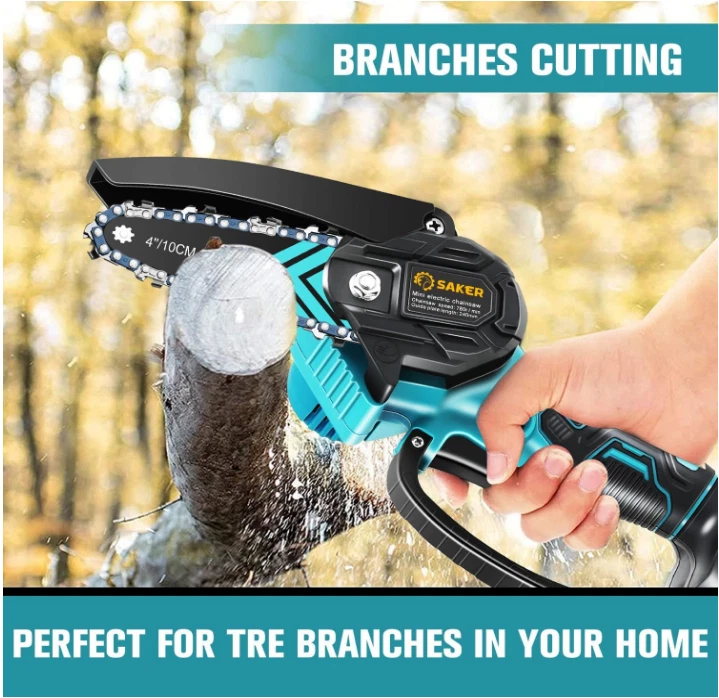 Power Source: Battery Type: Mini Chainsaw Brand: Saker