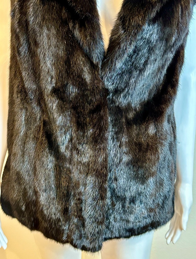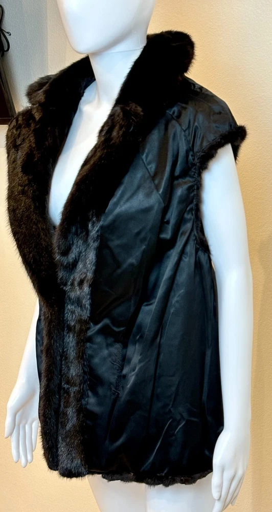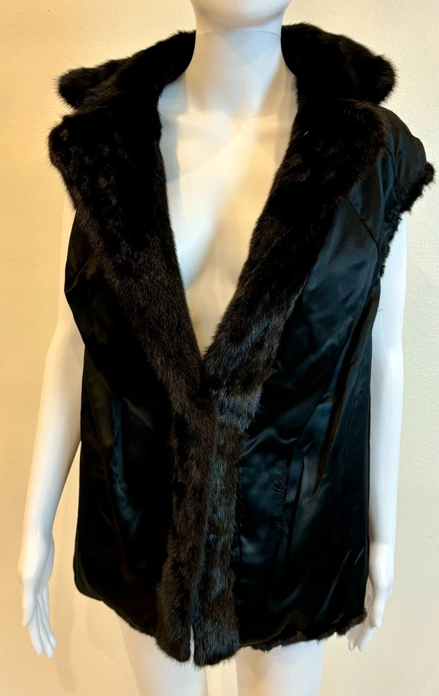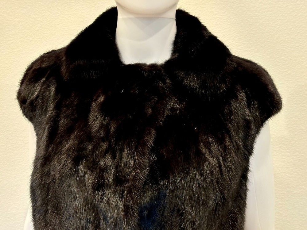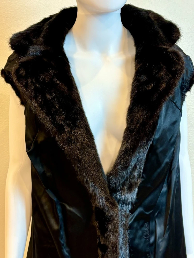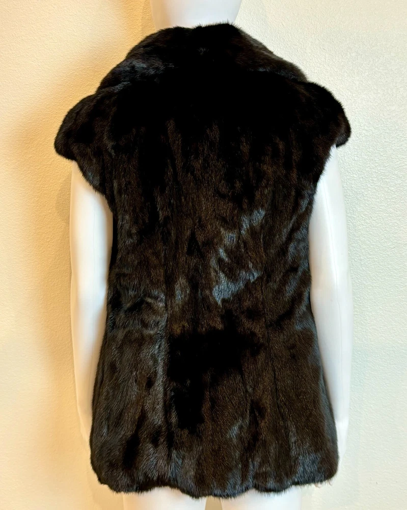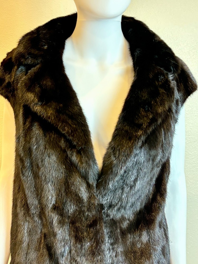 Sakowitz Black Mink Vest from Sakowitz Furs in Houston, TX. There is no size, so I am going off of measurements completely. PLEASE CHECK MEASUREMENTS BEFORE PURCHASING . The vest has 2 pockets and is closed by a hook and loop. This is 100% mink fur and is in excellent pre-owned condition. There are no rips, tears, holes or stains and the fur is beautiful! This is such a beautiful vest and would make a great addition to any wardrobe. Please see photos for measurements and condition. Chest: 32 In Waist: 38 in Hem Line: 42 in Length: 27 in This is a previously owned and used item. It may have signs of wear and previous use. We offer combined shipping to help save you some money!! Simply reach out to me to apply discount PLEASE NOTE: All measurements are approximate and taken with garment laid flat. Please look closely at pictures for measurements before purchasing. If you're not sure about the size, lay flat a similar item of your own and measure that item to compare with our measurements and feel free to message us with any questions. Colors may differ slightly in shade from photos to actual item due to variances caused by photography lighting and monitors. We greatly appreciate your business! Please remember to leave positive feedback if you are happy with your purchase! Thanks for looking!