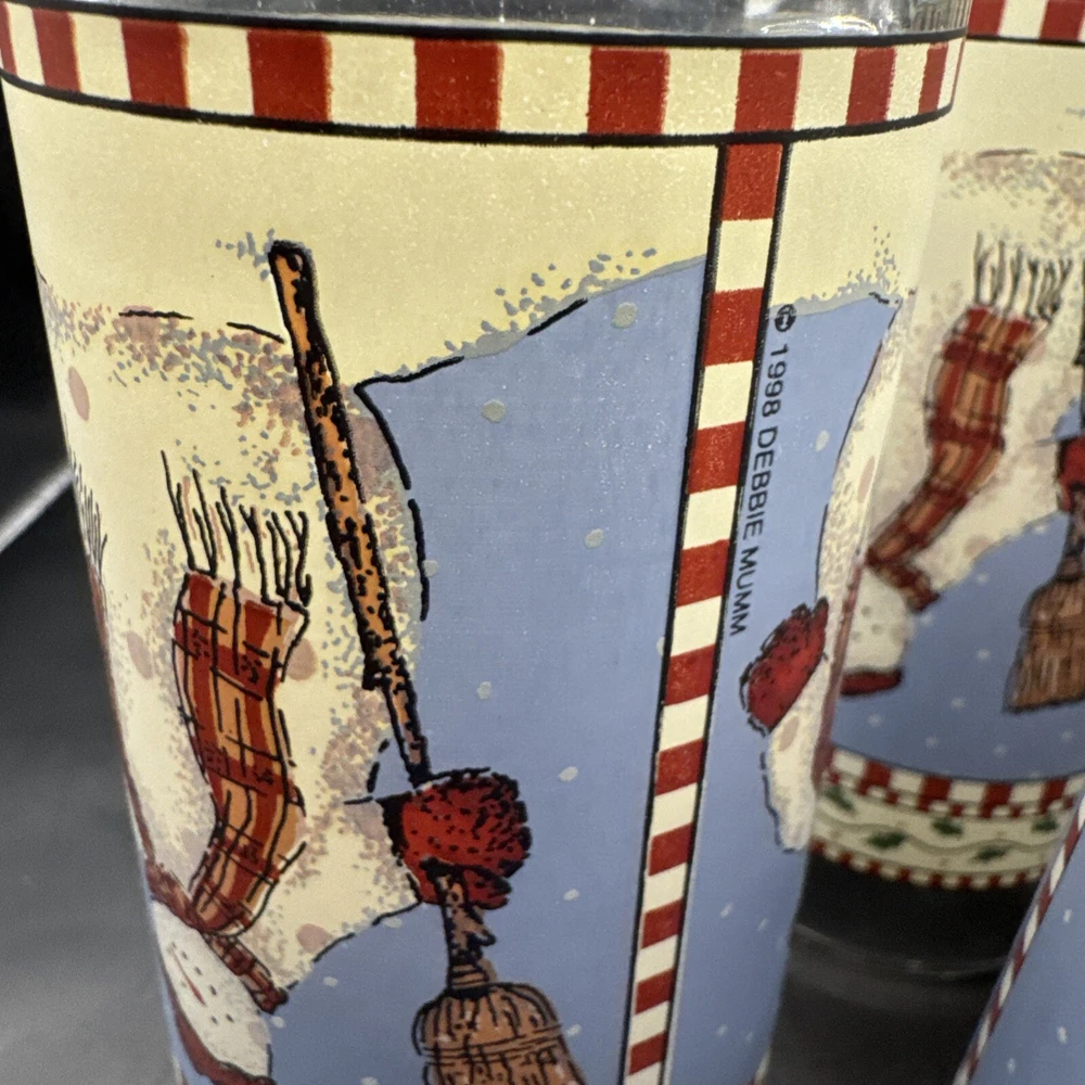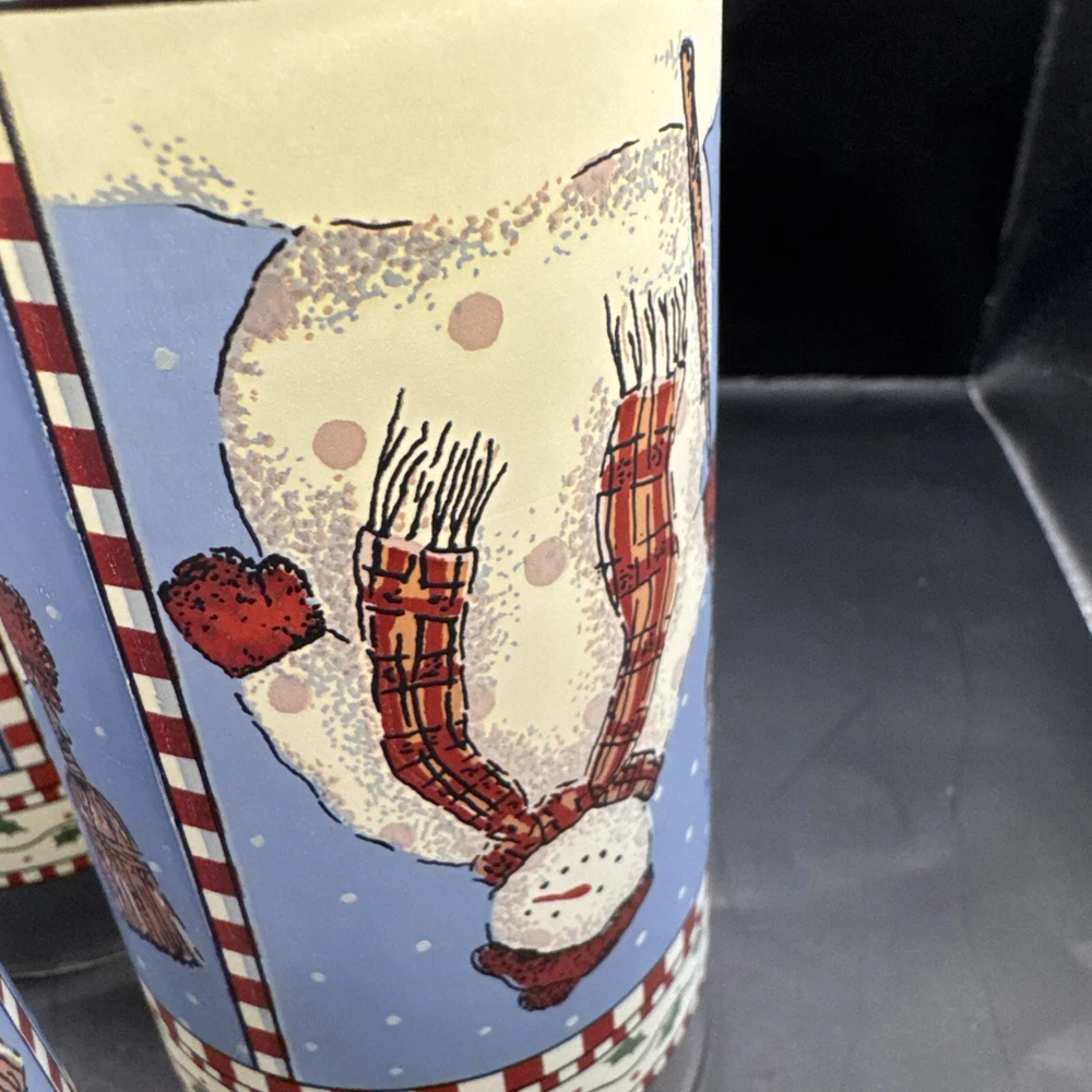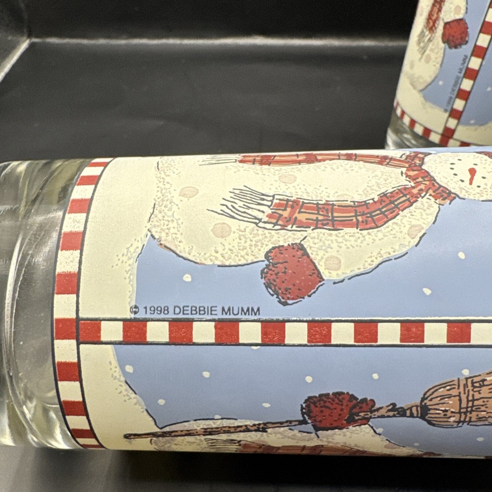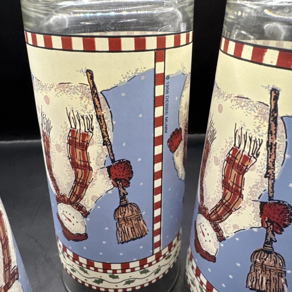 Sakura Debbie Mumm Winter Snowman 12oz Highball Glass Set of 4 Christmas 1998