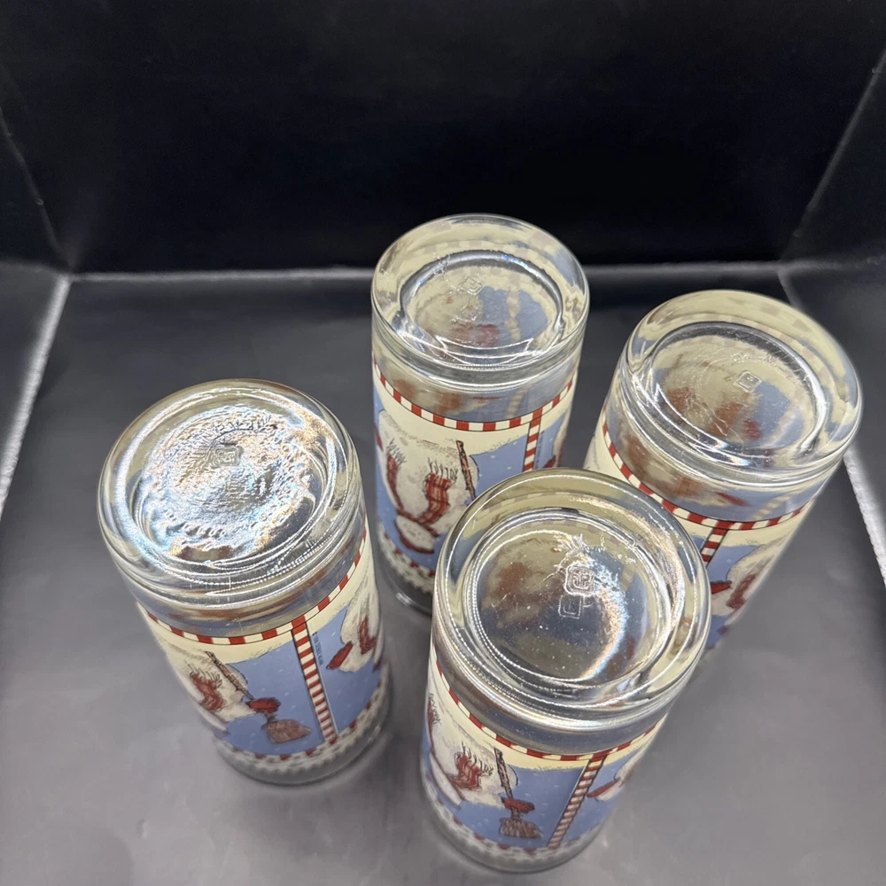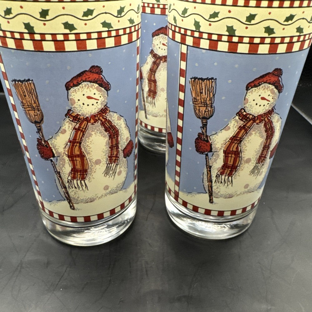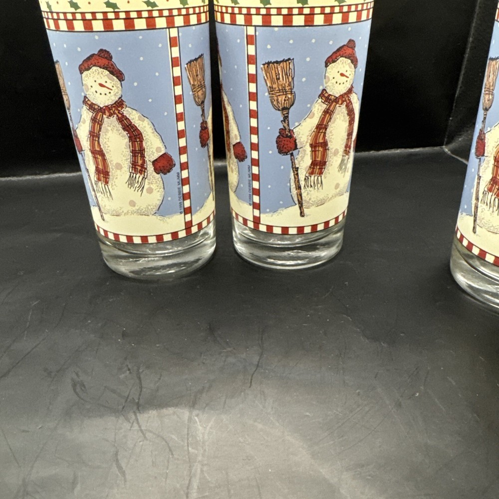 Sakura Debbie Mumm Winter Snowman Highball Glasses Christmas 12 oz Set of 4 in very good condition as seen in pictures.
