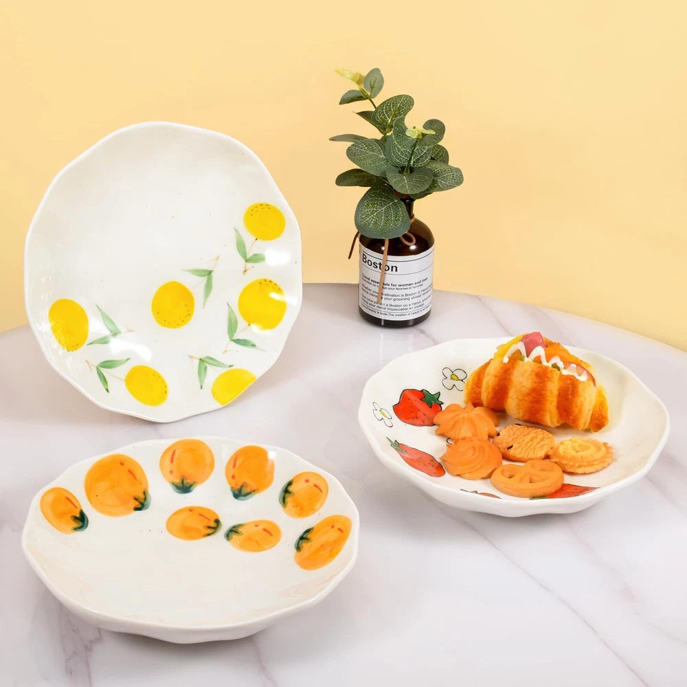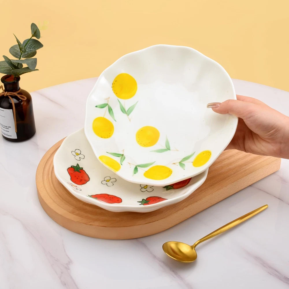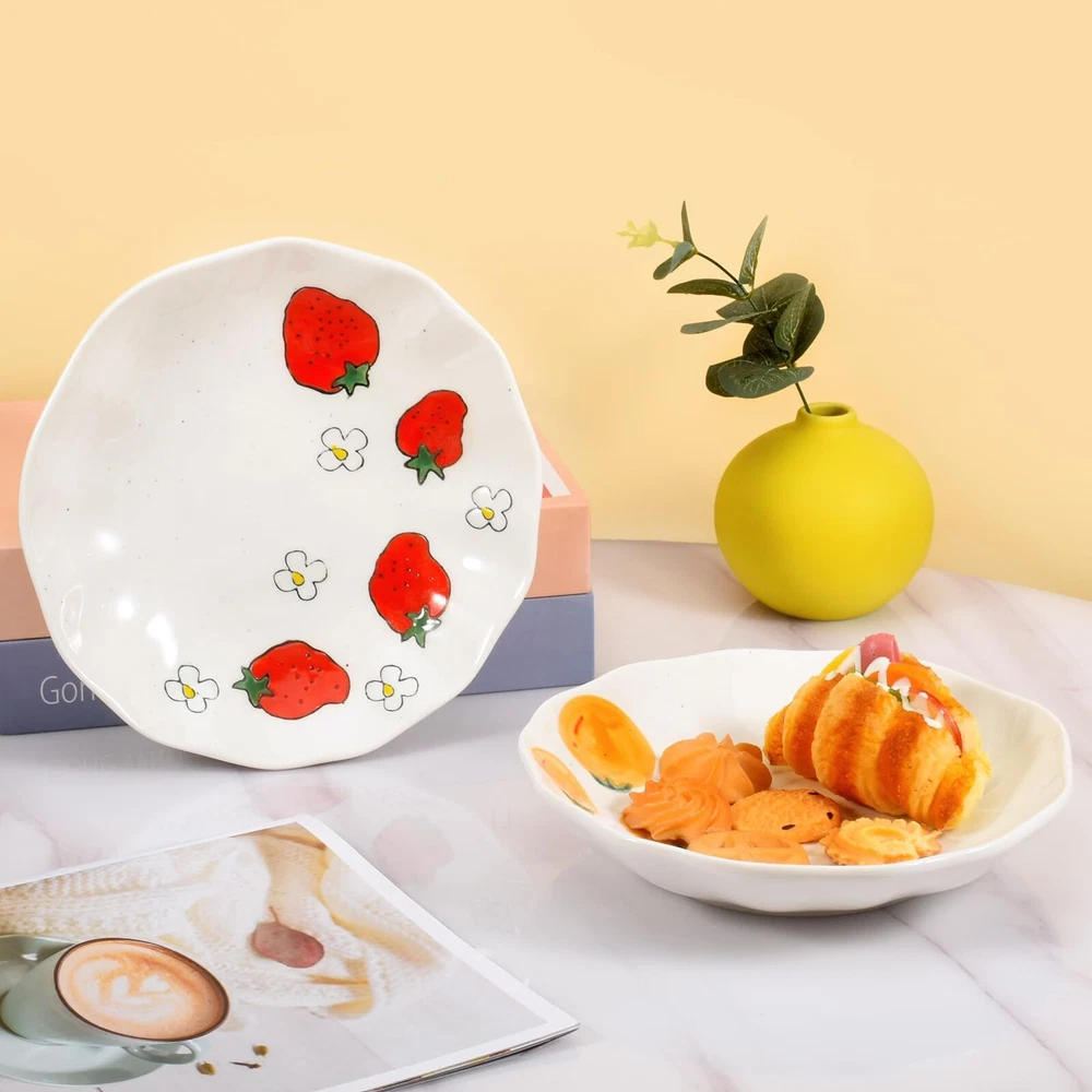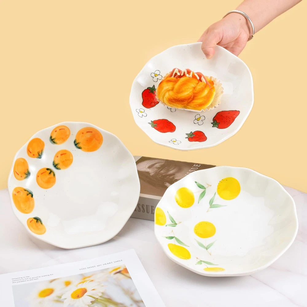 High Quality Ceramics: The lovely irregular dinner plate is made of high quality ceramics and healthy colored glaze through a multi-layer process, high temperature firing makes it sturdy, durable and safe to ensure that you can enjoy your food without worry. Unique Hand-Painted Design: Whether it's the creative dinner plate shape or the lovely pattern, all are carefully handmade, hand-painted underglaze process makes the dinner plate exquisite and lovely, creating a visually appealing atmosphere, perfect for daily use or entertaining guests. Multifunctional Use: 8-inch dinner plate can be used for brunch, appetizers, snacks, breads, desserts, pasta, barbecues, picnics and more. Unique and beautiful hand-painted plates will also make stunning kitchen decorations. Easy to Clean and Maintain: Our ceramic dinner plates are microwave, oven and dishwasher safe, they are also scratch resistant, stackable and easy to store when not in use for maximum convenience in your kitchen. Perfect Life Ideal Choice: These delicate plates are both beautiful and practical, as a perfect choice for lunch, dinner, afertnoon tea, or leisure paties with family and friends around you.