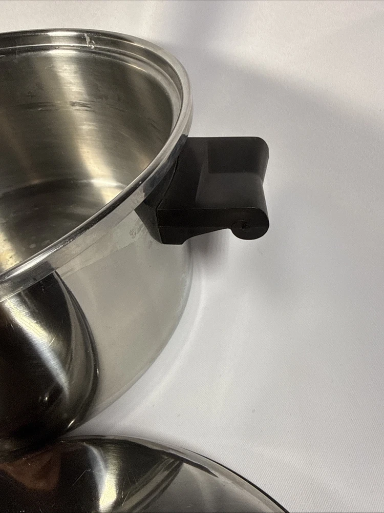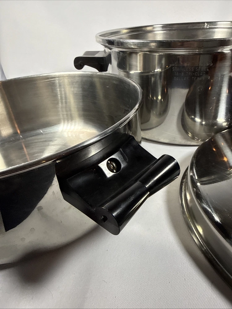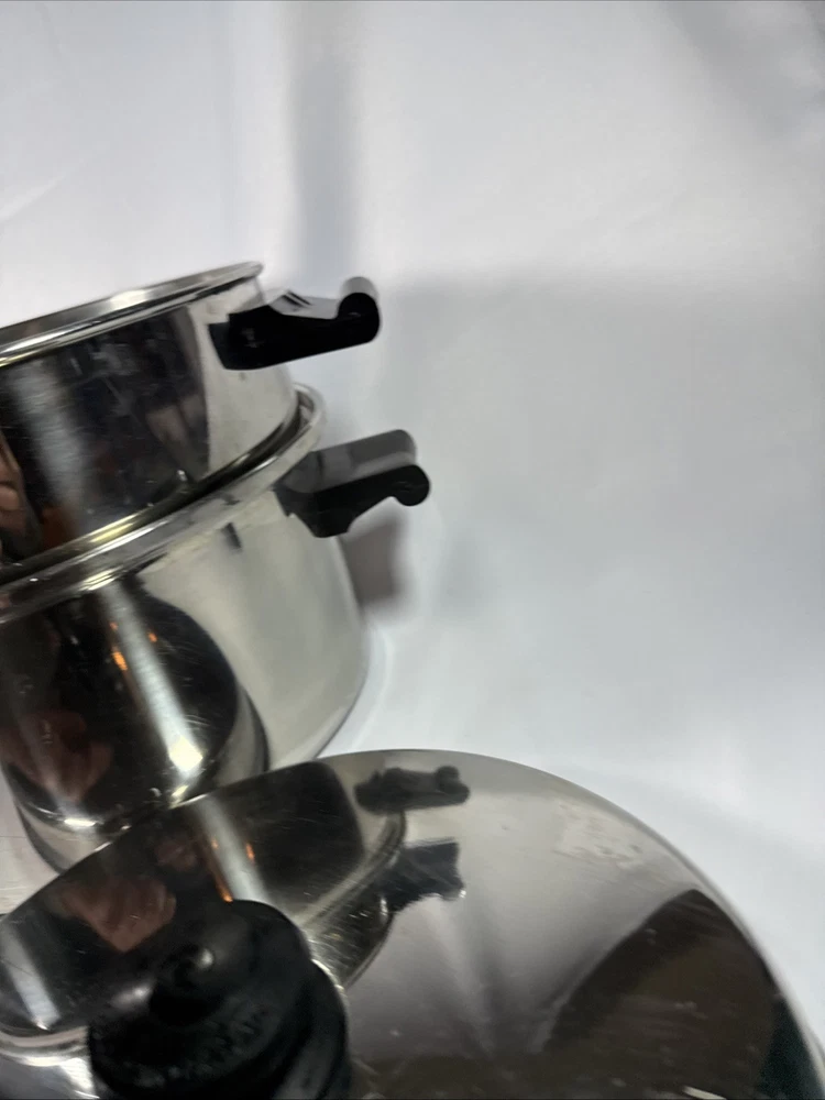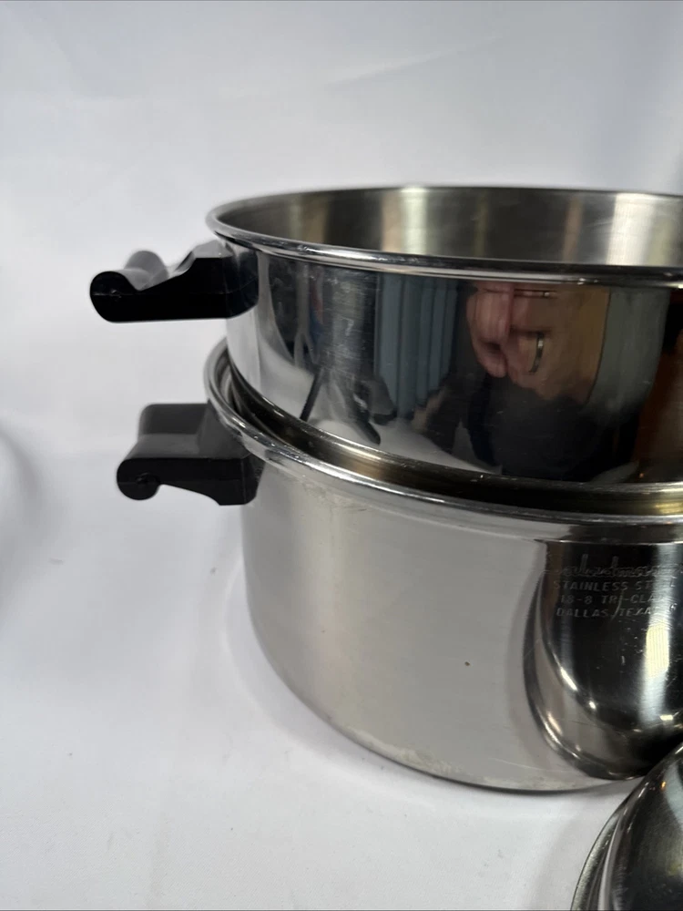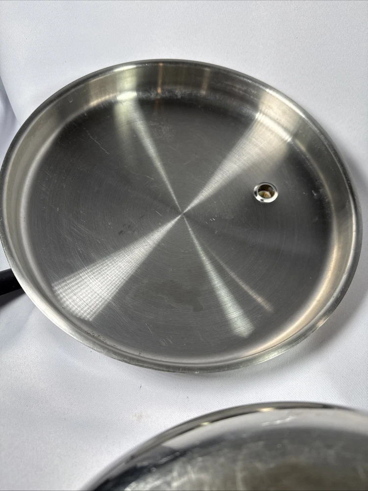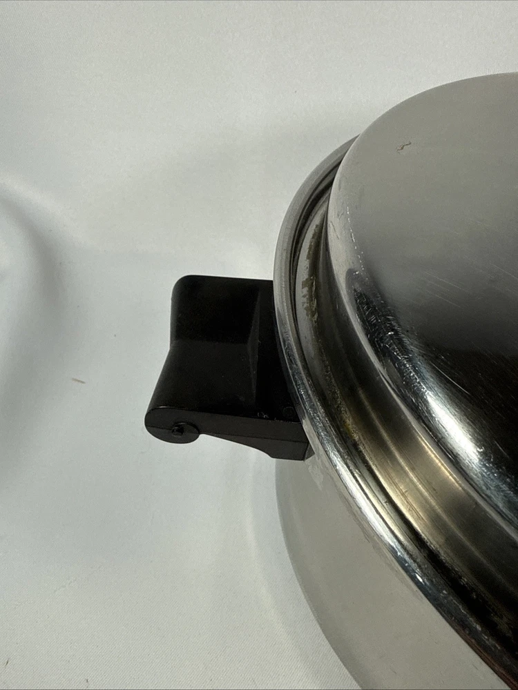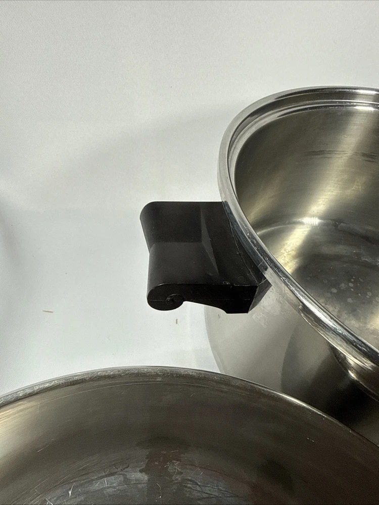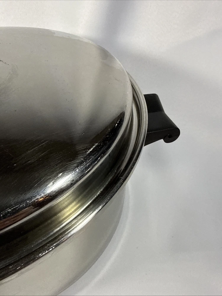 Saladmaster Stainless Steel 18-8 Tri-Clad 6 Q Stock Pot with Vapo Lid & Domed Lid. Pre-owned and shows some wear, please see photos for condition. We do our best to describe in words as well as photographs the condition of our items. If you have any additional questions or you experience any issues regarding your order, please don't hesitate to contact us. We test all items, but sometimes items break/malfunction, especially vintage items. We are committed to ensuring your satisfaction and are here to help resolve any concerns. Thank you again for choosing us, and we look forward to serving you in the future!