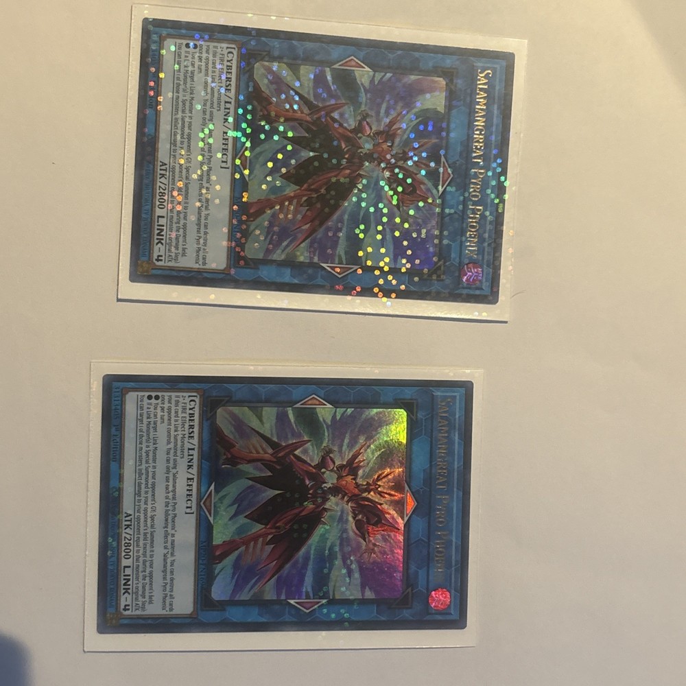 Features:1st EditionRarity:Ultra RareLanguage:EnglishCard Type:Effect, LinkGame:Yu-Gi-Oh! TCGAttribute/MTG:Color:FireCard Name:Salamangreat Pyro PhoenixCreature/Monster Type:CyberseCard Number:MP20-EN169Set:2020 Tin of Lost MemoriesManufacturer:Konamibrand:KonamiAttack/Power:2800Additional Description:Salamangreat Pyro PhoenixCard Text:2+ FIRE Effect Monsters