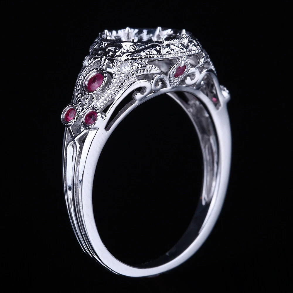 ★Metal:Sterling Silver 925 Plate White Gold Stamped:925 Total Gram Weight:2.75g Ring Size:6.5 (resizable) Setting:Pave & Bezel Setting Width Top:10.66mm Width Bottom:1.68mm ★Center Stone:No Main Stone Shape:Round Size:7-7.5mm ★Side Stones:100% Genuine Natural Diamonds & Genuine Rubies Color:H-J Clarity:SI3-I3 Shape:Round Singe Cut & Round Cut Total Carat Weight:0.3ct SKU:R21229W Thank you for visiting our store.we offer excellent prices on high quality jewelry! ★Metal:Sterling Silver 925 Plate White Gold Stamped:925 Total Gram Weight:2.75g Ring Size:6.5 (resizable) Setting:Pave & Bezel Setting Width Top:10.66mm Width Bottom:1.68mm ★Center Stone:No Main Stone Shape:Round Size:7-7.5mm ★Side Stones:100% Genuine Natural Diamonds & Genuine Rubies Color:H-J Clarity:SI3-I3 Shape:Round Singe Cut & Round Cut Total Carat Weight:0.3ct SKU:R21229W RESIZING IS AVAILABLE SHIPPING TIMES RETURN/EXCHANGE POLICY CUSTOM DESIGN ABOUT US RESIZING IS AVAILABLE ▲ ABOUT RING SIZE▲ ★ If there is no resize request from your ebay message before the pay,the ring with size we mail out is as per the one which in the ebay listing description.Resizing range can be US #3-13.It will need charge accordingly fee.Please contact us for details of charges with Ebay message. ★ Resizing greater than 4 sizes up or down may require a new shank. ★ Rates may be higher for wide rings, full eternity bands, or invisible setting. ★ If you buy a band match your main ring for set. Please enquiry us if the band will match your main ring before make the payment. ▲ ABOUT SEMI MOUNT CENTER SIZE ▲ Also make sure the setting will fit your stone size or not when you buy a semi mount . If our item don`t fit your stone,please do not make the payment. We can find other items to fit your stone or redesign for your stones. ▲ WARM REMINDER ▲ Items are declared at price purchased for customs purposes. If you wish to provide special instructions for your shipment please do so before or immediately after your purchase. Custom fees are a part of all overseas transactions, and differ in each country. We are not responsible for any custom fees incurred in receiving your item. Please all questions and requires before bid or pay for,all items must be paid for within a week after buy,or we will are not responsible for that the items have been sold out or on auction again,please inform inadvance if delay payment.Thank you very much! SHIPPING TIMES ▲Handling period▲ Please note our items include either a 1 day or 5 day handling period, depending on the item. Please see the Shipping & Payments section to view the exact handling period for this item. Expedited service may be available by special request. ▲Please contact us to request delivery by a particular day▲ Expedited Shipping We strongly recommend expedited shipping because we understand the importance of on-time delivery for birthdays, anniversaries, holidays and any other special occasions. ▲Shipping by Economy/Standard Shipping is very unreliable and delivery times are not guaranteed▲ We have no control the delivery times. As you know the peak holiday season and the shipping agency is extremely busy on handling parcels. As a result, it might need longer time to deliver this international parcel. Please contact us to request expedited shipping to avoid delays. RETURN/EXCHANGE POLICY Please inspect your order upon reception and contact us immediately if the item is defective, damaged or if you receive the wrong item, so that we can evaluate the issue and make it right. We give our best effort to take the most accurate photos possible, but often times photos do not do our beautiful jewelry justice. Please understand that color accuracy varies from monitor to monitor. In order to give the buyer a trustworthy and satisfactory Jewelry manufacturer. We accept the unconditional return. Your satisfaction is guaranteed, We stand by a full 100% money back return policy because our goal is for you to be happy with your purchase. We accept returns and we will give you a full refund except the shipping payment for the piece purchased if the item is shipped back within 30 days. Buyer is responsible for the cost of returning shipping. We need to be notified of the return of the item and it must arrive to us in the same condition we sent it out in. Item that have been altered in any way, such as sizing, setting center stone,are not eligible for return or exchange.There will otherwise be a restocking fee assessed. Items sent back for return without communicating with us will not be accepted.Please be sure to send a message to confirm with us. ▲ Return Policy Terms and Conditions▲ Return policy does not apply to any custom work or any pieces that were modified (other than resizing). Resized items are returnable for a full refund for the cost of the item with the exception of eternity bands. Items that were modified or custom pieces are subject to a restocking fee upon return. Custom design fees and service/shop fees are non-refundable. Any services, modifications, custom add-ons, special orders or expedited shipping fees are non-refundable. ▲ Feedback ▲ Our excellence in our products and service, is reflected by our feedback. Keeping our Service, in communication and shipping time, at a 5 star level is our priority. Please contact us with any problem you might have with any transaction, prior to leaving feedback, remember no problem is too small. We guarantee your problem will be resolved immediately. CUSTOM DESIGN We offer custom gold & diamond jewelry according to your designs special requires. The most selections of semi-mounts/settings,wedding bands, engagement rings, gemstone rings. Welcome bulk order or directly order,it can save your time from auction and do more business. ▲Customization process▲ Step 1: Send us a photo or drawing of your perfect ring or piece of jewelry. Step 2: We will provide you a full detailed estimate to meet your specific requests. Step 