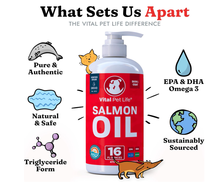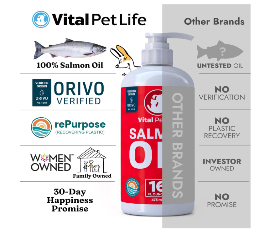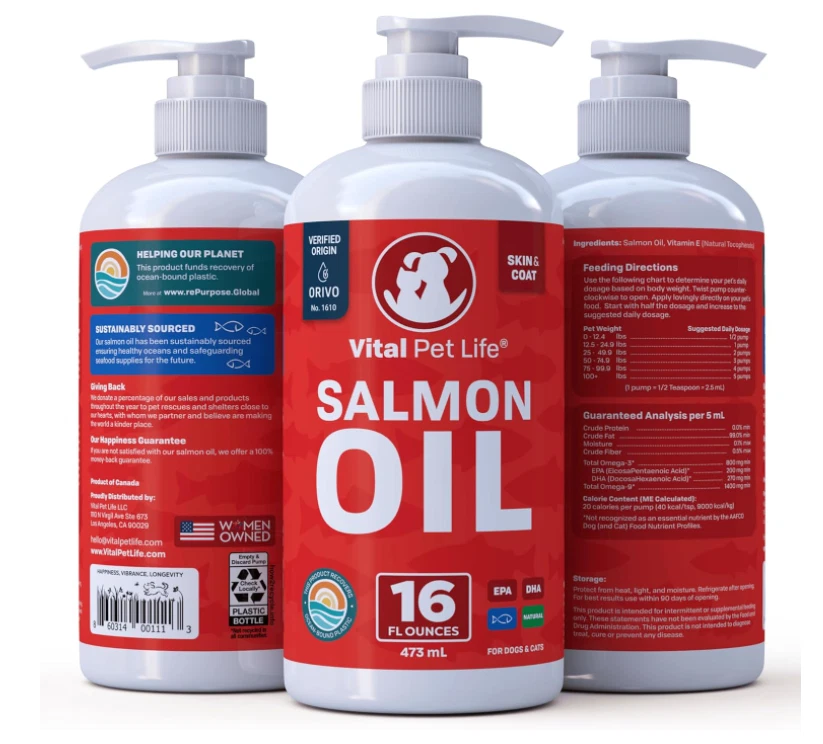 Salmon Oil for Dogs & Cats - Healthy Skin & Coat, Fish Oil, Omega 3 EPA DHA, Liquid Food Supplement for Pets, Supports Joint & Bone Health, Natural Allergy & Inflammation Defense, 16 oz Brand Vital Pet Life Flavor Fish,Salmon Item Form Oil Item Weight 1 Pounds Target Species Cat,Dog,Ferret,Fish,Horse About this item SOFT, SHINY, & SMOOTH COAT - Does your dog, cat, ferret, horse, or energetic ball of fur have a dull, dry or coarse coat? Essential omega 3 fatty acids from our salmon oil supplement will help support healthy skin and coats. You’ll want to hug them even more! DRY SKIN, ITCHING, FLAKING, SHEDDING, & ALLERGIES? - Is your pet constantly itching or scratching due to dry skin and allergies? The essential fatty acids contained in salmon fish oil help support natural allergy defense. Your pet will be much happier playing rather than itching and scratching. INFLAMMATION, JOINT PROBLEMS, & ARTHRITIS? - Have you noticed your pet playing less and having trouble with common activities? The omega 3 in salmon fish oil helps support joint and bone health and also supports a healthy immune system. Normal activities will be funner and more comfortable. SUSTAINABLY SOURCED - Our salmon oil has been sustainably sourced ensuring healthy oceans and safeguarding seafood supplies for the future. PROUDLY WOMEN-OWNED, FAMILY-OWNED, and US-OWNED - We are proud to be Family-owned, Woman-owned, and US-owned. Our products and ingredients are sourced globally so we can give our fur babies the best. . We offer FREE shipping on all orders! . We ship within Five business days of payment, usually sooner. . We use a selection of shipping services such as UPS, FedEx, USPS etc. . We only ship to the lower 48 states, no APO/FPO addresses or PO Boxes allowed. . Local pickups and combined shipping options are not provided at this time. . Your satisfaction is a wonderful reward for our efforts. Please assist us by leaving a positive review if you feel pleased with our service. . In the event that you encounter any difficulties related to your order, please do not hesitate to reach out to us directly through the Messaging system on the Ebay platform. Kindly consider opening a COMPLAINT or a RETURN REQUEST as a last resort, only after all other possible measures have been attempted and we have been unable to provide you with assistance. . We will get in touch with you within 24 hours and make every effort to ensure your satisfaction. . Please rest assured of our service quality.