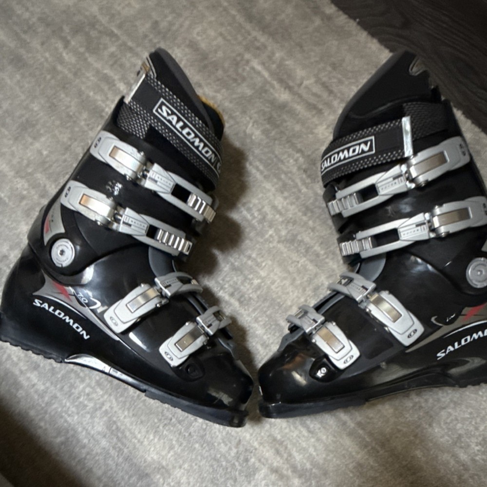 Salomon Men's Black Silver Ski Boots 24.5 Cuff Buckle Power Strap Metal Buckles
