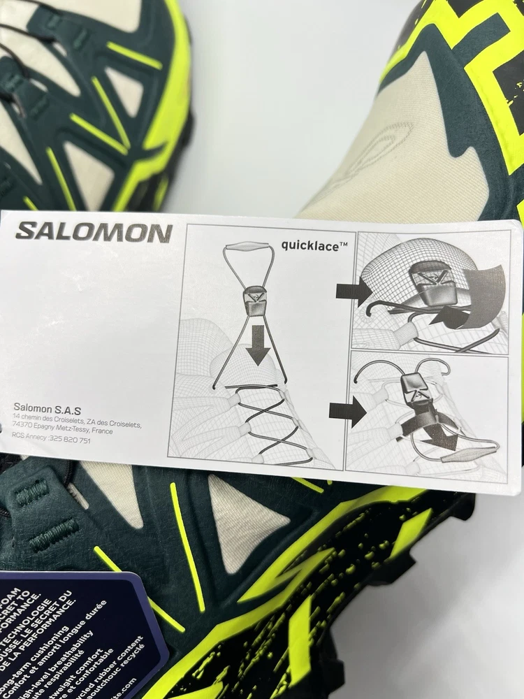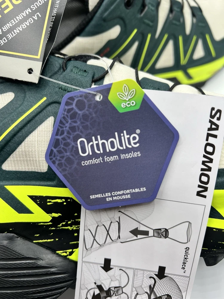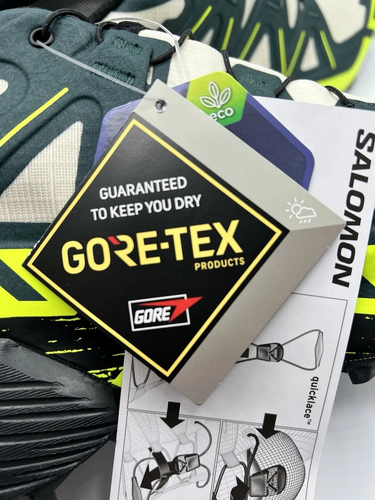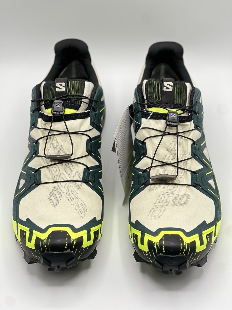 Experience the great outdoors with these Salomon Speedcross 6 sneakers. Designed for men, these athletic shoes come in a vibrant green color with a colorblock pattern. The Goretex upper material is waterproof and lightweight, making them perfect for hiking, trail running, and cross-training activities. These sneakers feature a low-top shoe shaft style and standard shoe width, with a cushioned and adjustable fit that provides comfort and performance. The rubber outsole material is suitable for gym and training, walking, school, and running and jogging. These Salomon Speedcross 6 sneakers are perfect for those who love nature and sports.