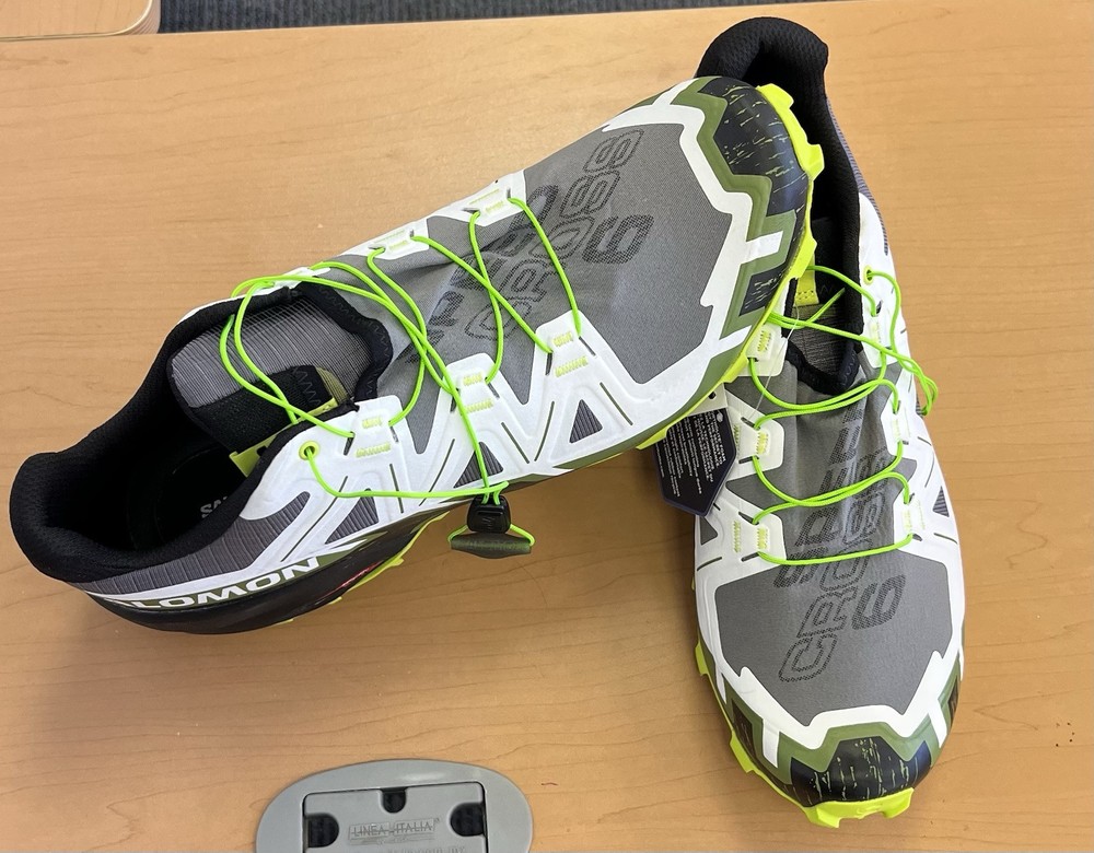 Experience the ultimate fusion of comfort and agility with the Salomon Speedcross 6 in a versatile gray/white/green color scheme, designed specifically for men with a 10.5 US size preference. Ideal for hiking and jogging, this pair offers a sleek, single-divider design that provides ample space for your essentials without compromising on mobility. Crafted by the renowned brand Salomon, these shoes are engineered to tackle diverse terrains with ease, featuring a supportive structure that ensures a secure fit for all your outdoor adventures. Whether you're navigating trails or hitting the pavement, the Speedcross 6 is a steadfast companion for your active lifestyle.