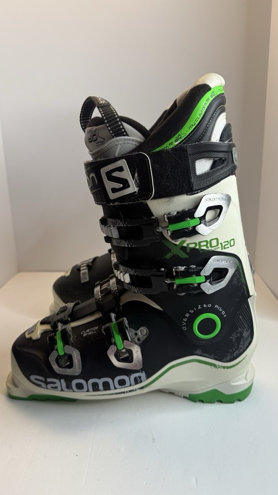 Salomon X Pro 120 Ski Boots — high-performance alpine boots for advanced skiers. Size 28.0 / 28.5 (326 mm boot sole length). Features My Custom Fit 3D Race liner, Custom Shell design for personalized fit, and Oversized Pivot for maximum power transfer. Condition: ✅ Good used condition — minor scuffs and cosmetic wear from normal use (see photos). ✅ Soles and buckles in great shape, all straps and clips fully functional. ✅ Clean interior, no odor. ✅ Flex 120 — responsive and stable performance. Made in Romania. Sold as is, ready for the slopes!